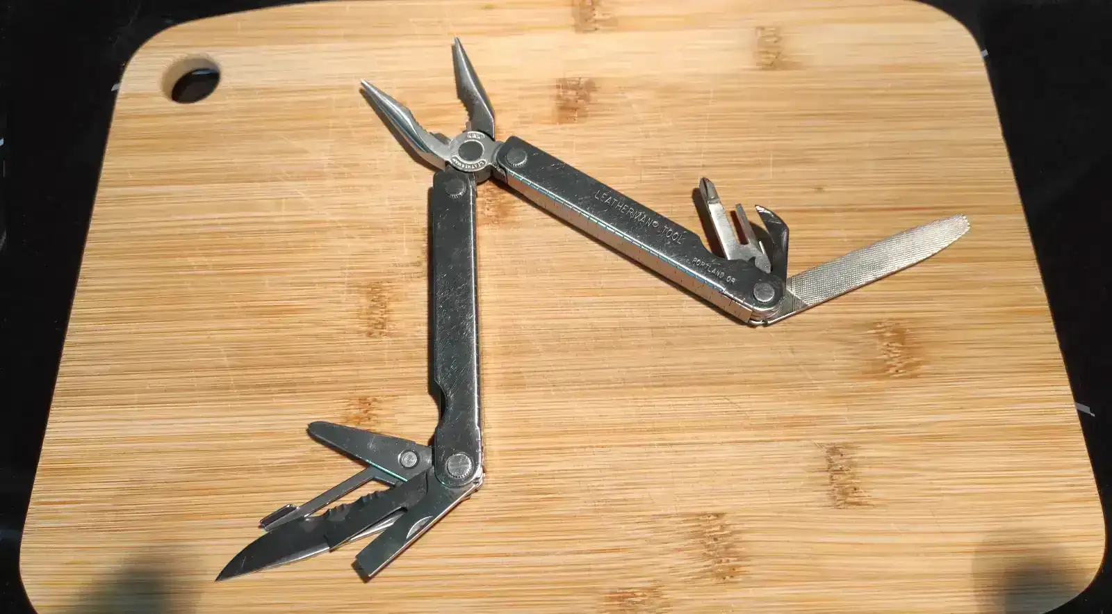 Flipando me he quedado. Primero desinfectante y desengrasante (el del mercadona mano de santo). En el mismo líquido lleno de oxido puse bicarbonato y a darle al cepillo de dientes viejo que uso para estas cosas. Algunos puntos de óxido en los alicates, navaja y tijeras. Paso un palito de madera para ver si ha penetrado en el metal y me doy cuenta que es superficial. Un poco de Aladin (algodon mágico metales). No hace falta vinagre blanco de limpieza que es muy agresivo. La seco y le paso 3 en Uno spray para que los intrumentos se liberaren. Un montón de óxido en los ejes que salió con el líquido. Finalmente, la acabo con abundante alcohol y me ha quedado así. Se abre y cierra todo como nueva. Y eso que todavía no tengo la llave para desmontarla. Muy buen acero resistente a la corrosión. Hecha para durar.