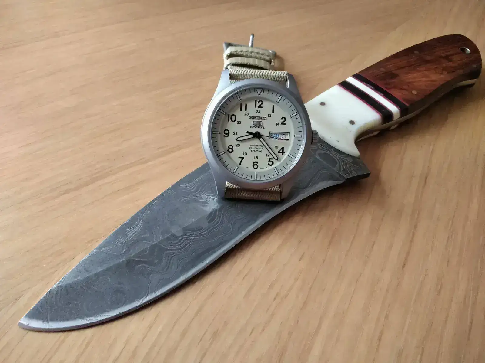 El cuchillo es de origen Pakistaní. La empuñadura es de hueso de búfalo y madera de cedro y la hoja es acero de damasco con un afilado increíble.Que precioso cuchillo. ¿Nos puedes contar algo sobre el?