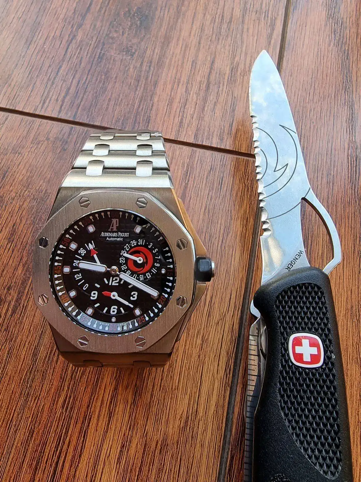 Mira que me gustan los filos… pero se me van los ojos al reloj…. EspectacularPor fin pude conseguir la navaja para poder hacer esta foto del dúo Alinghi