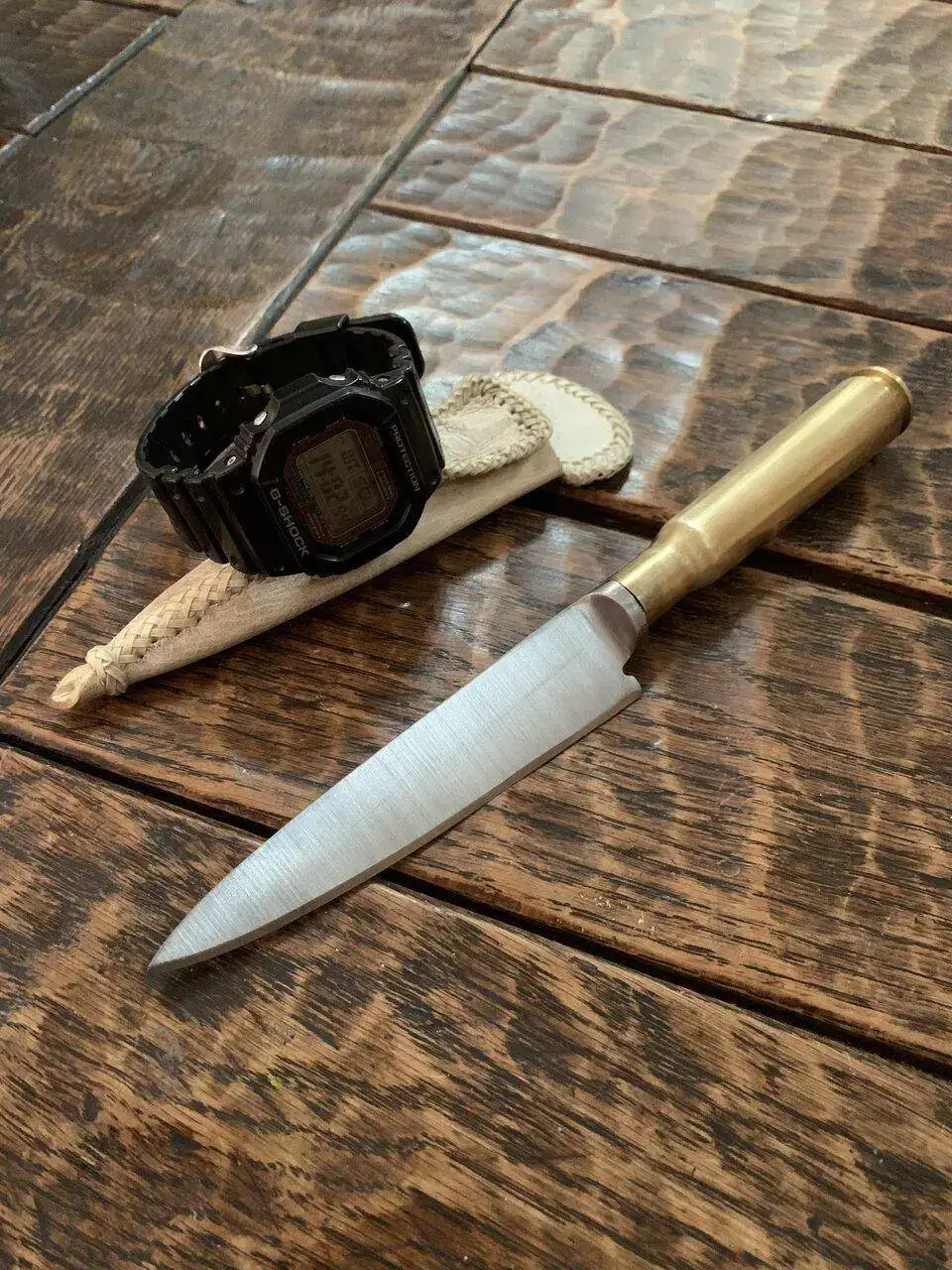 Si, un calibre 50.¿La empuñadura es un casquillo de bala?
