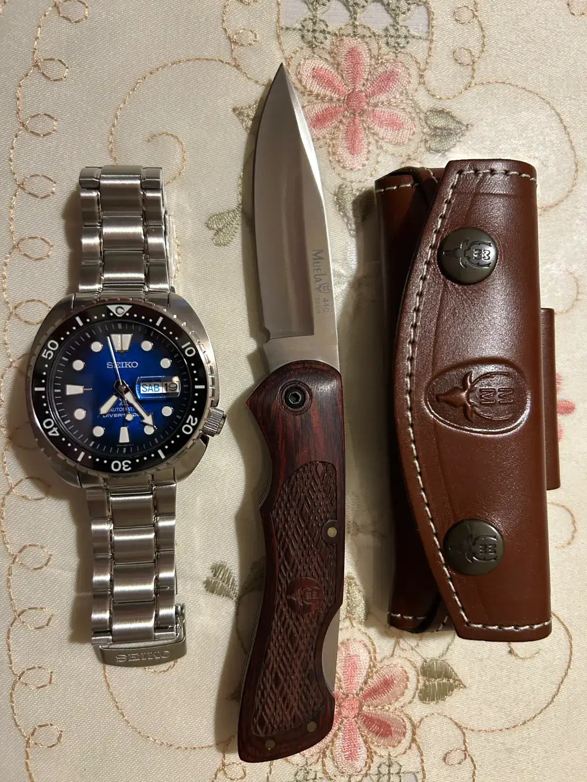 Vaya, un Oris (mi debilidad relojil) y una albaceteña preciosa, si señor!Pastora albaceteña, fabricada a mano por Celaya. Mango de asta de toro, virola y rebajo de latón. Clásico sistema de cierre de palanquilla.