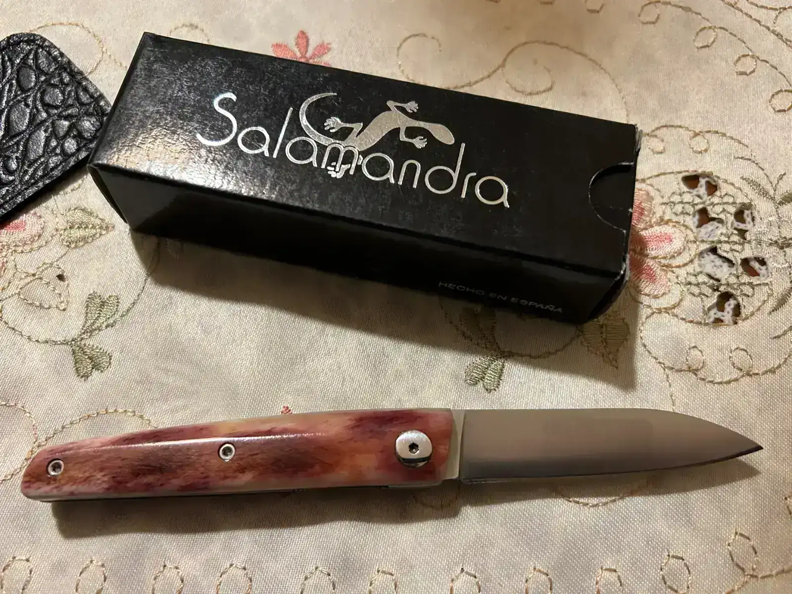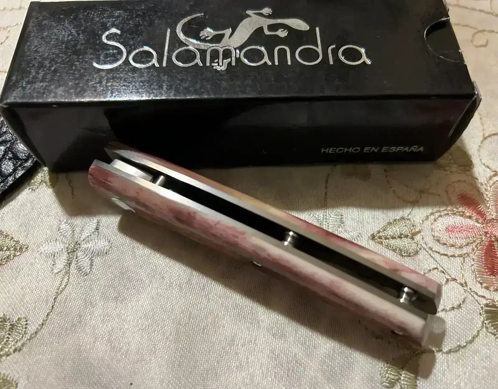 Muy guapa y muy exótica. Una pieza que siempre gustará 👍 Esta gente tiene un nosequé muy sencillo que me encanta. Serán de colección con los años.Muy buena compra , tengo una salamandra de cachas de hueso de camello y es brutal la calidad y el acabado de aquella navaja . A disfrutarla !