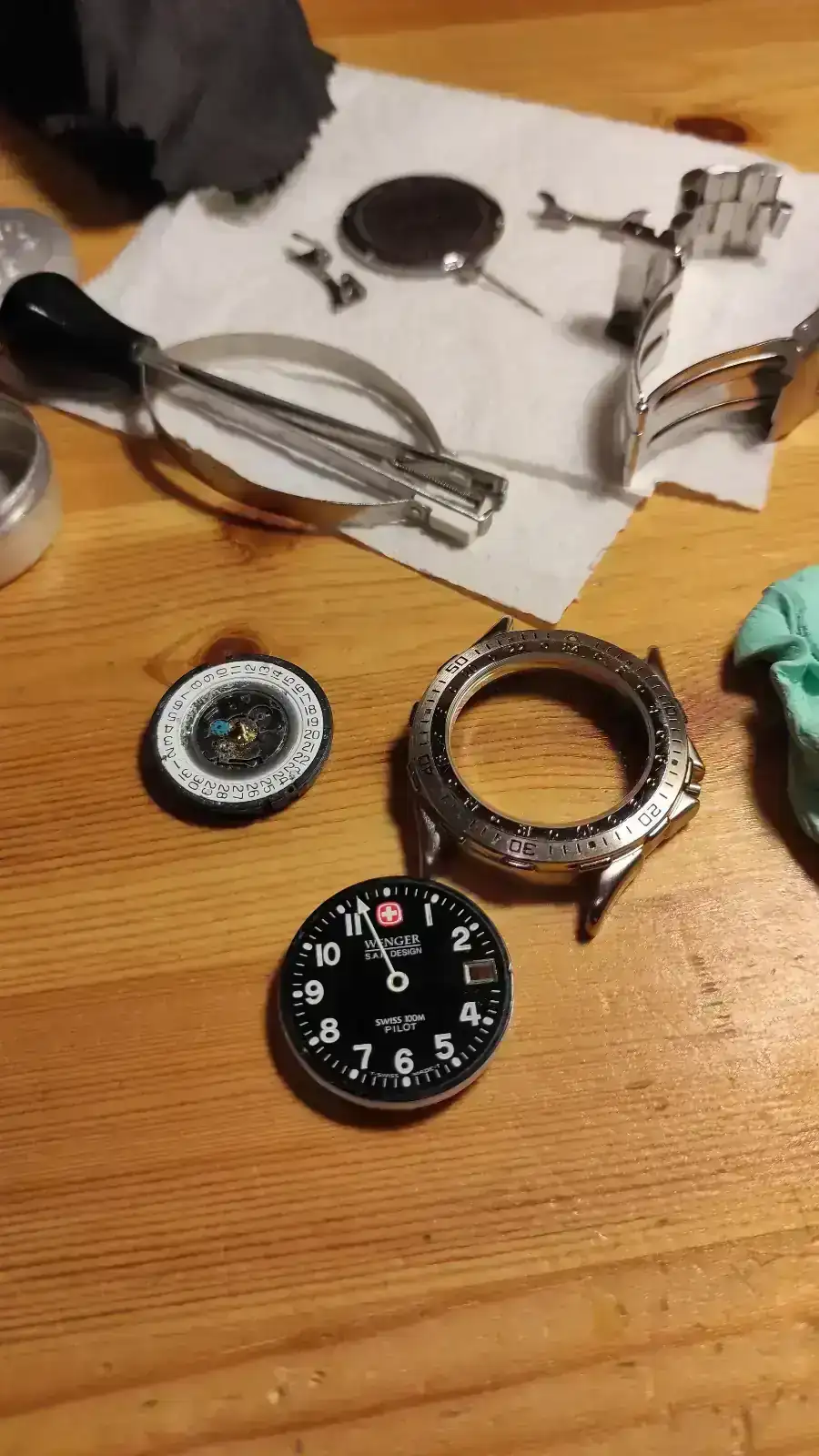 Como estoy de vacaciones y por instinto relojil me he puesto a restaurarlo (los cuarzo no pasan por el relojero, los arreglo yo). El calibre estaba destrozado por el agua ya que la junta de la corona era inexistente, la junta la he puesto nueva y va genial. La junta de tapa estaba ok. La corona y la tija las he tenido que limpiar de óxido ya que esta última encajará en el nuevo movimiento (no tengo q cortar una nueva 👍). He pulido con dremel y una esponja de cocina del mercadona el metal del cierre de la correa metálica y me ha quedado profesional (acabado mate), he limpiado el dial lo mejor posible y ha esperar el paquete del Ali para dejarlo en buen estado y funcionando.Total unos 18 euros y la pila que ya la compré para probarlo la primera vez que me llegó a casa. No es un Rolex pero me ha entretenido una tarde y otra cuando lo monte... Este casi seguro que se lo queda mi hijo de 9 años (37mm sin corona y unos 40 con). Ya lo presentaré con su correspondiente...