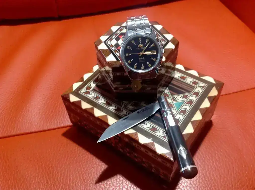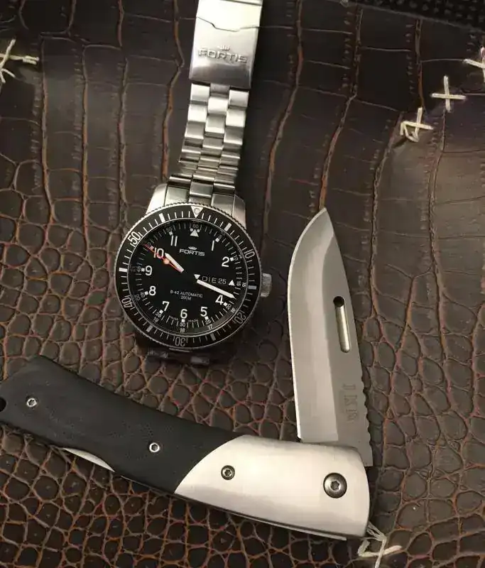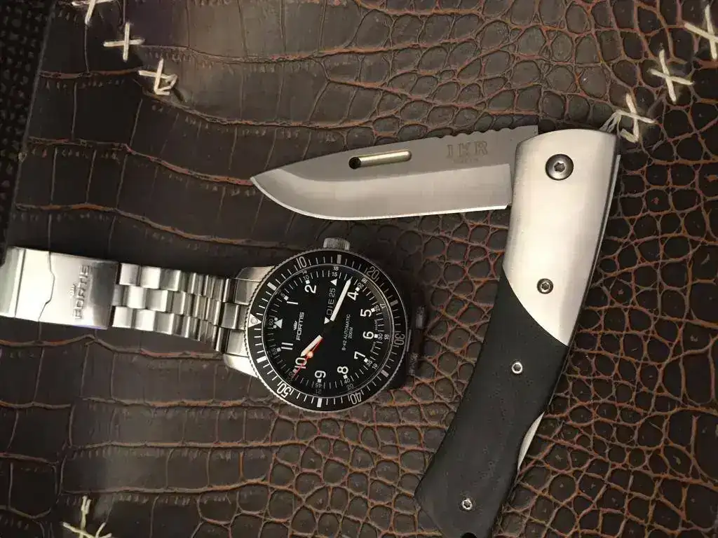 luego pongo otra fotito las cachas son de ébano y acero bohlerEl reloj mola, pero esa navaja me ha masmolado infinito: