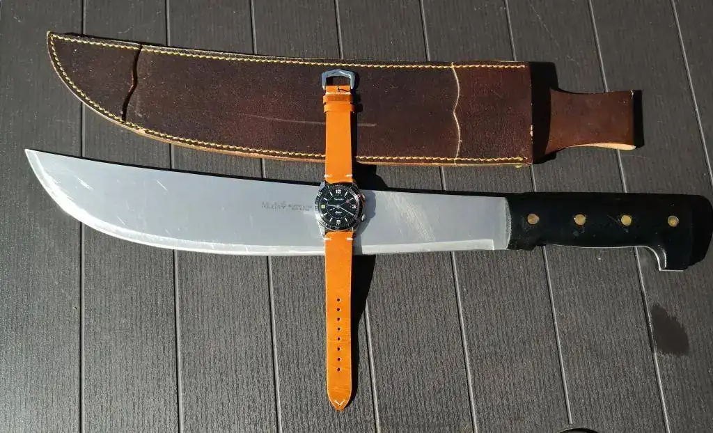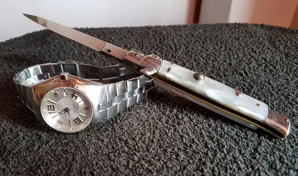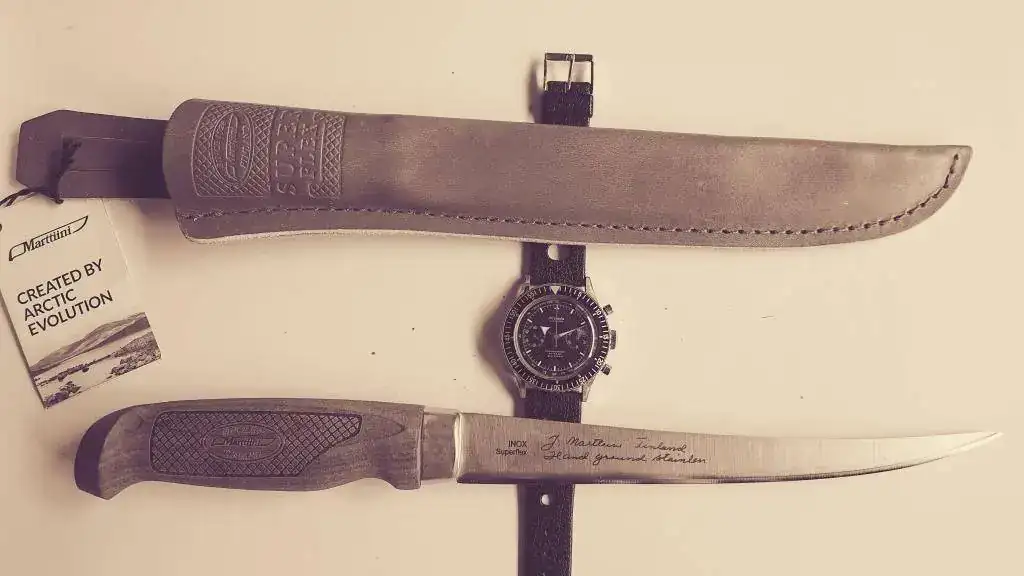 Muy lindos cuchillo y reloj! Y sino me equivoco es un cuchillo para filetear pescado, muy flexible