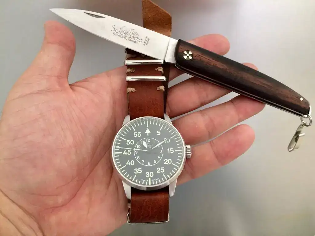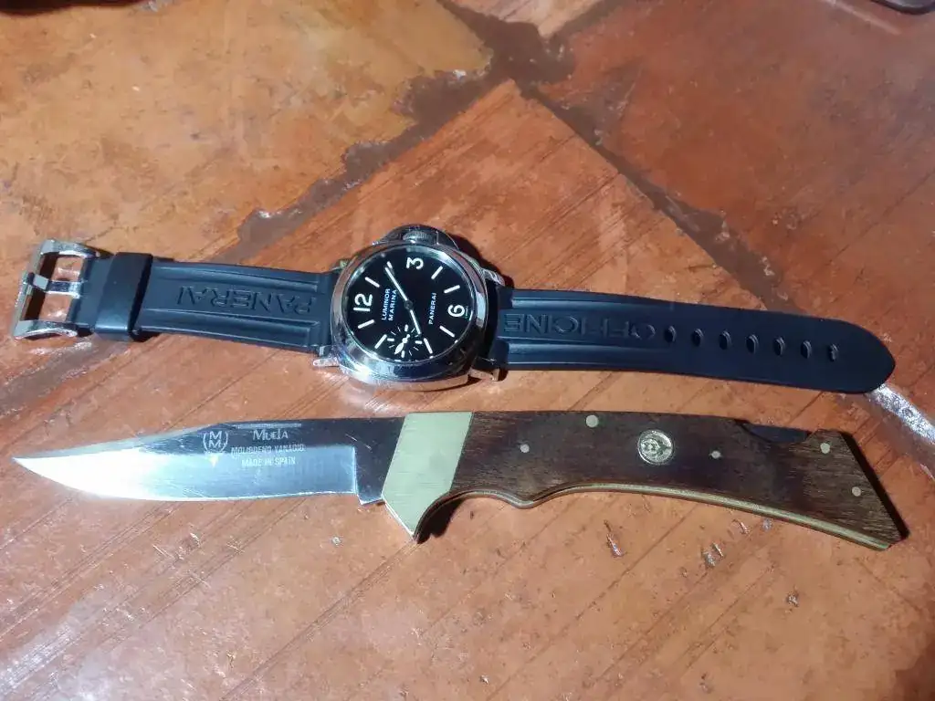 Como no me meto mucho en el general, acabo de mirar el hilo de arriba a abajo. Os acompaño con el reloj de hoy y la única navaja que utilizo. Podría pelar la fruta con un cuchillo, pero no me gustaría tanto como hacerlo con esta Muela.