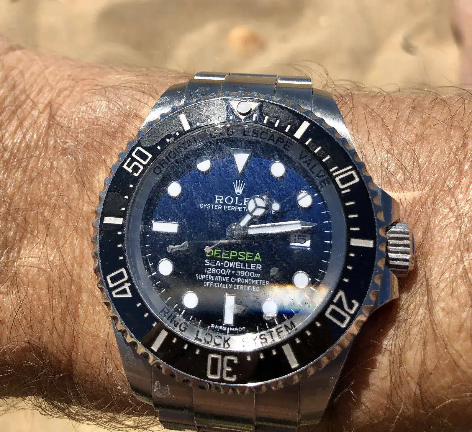 Creo que ninguno de mis relojes tiene una marca significativa debida al uso playero. Y en cuanto a la natación, snorkel y bajadas de apnea, solo un Vostok que ya había dado problemas bajando en un buceo con botellas volvió a pillar humedad. Y por cierto, el buceo con equipo autónomo, a diferencia de la playa, deteriora mucho los relojes: uno está pendiente de más cosas del equipo, o de hacer fotos, o estresado por unas condiciones difíciles, y el corolario es que el reloj se raya.