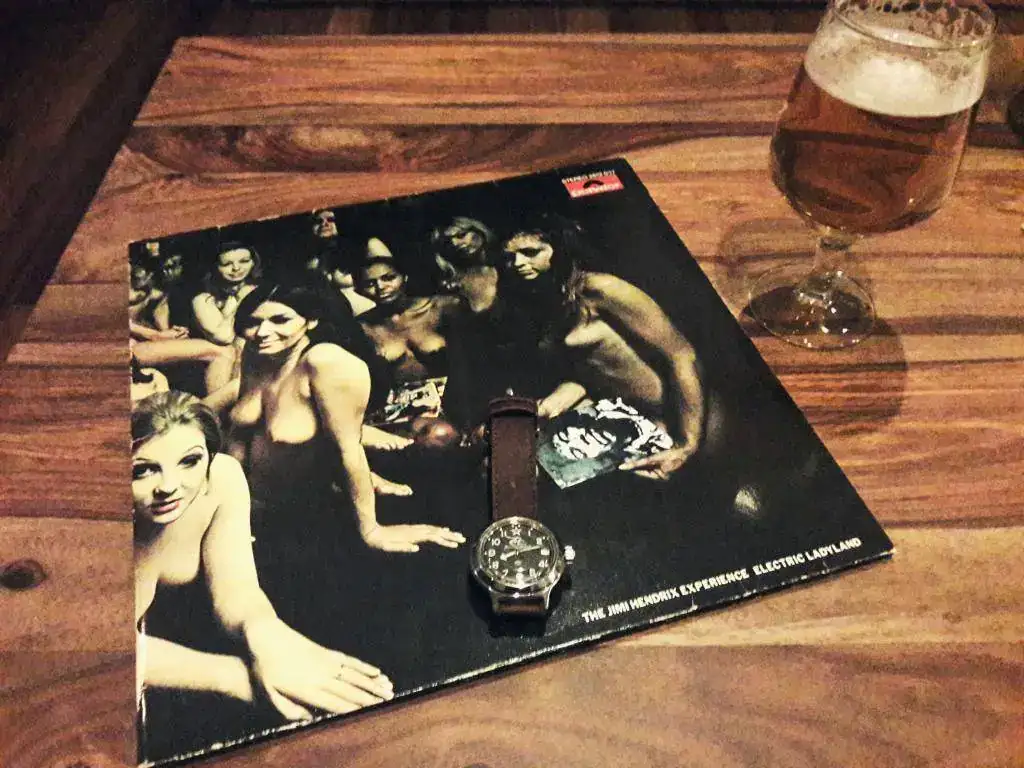 Hoy Electric Ladyland de Jimi Hendrix, primera edición alemana con portada original, año 1968, doble vinilo y Vostok amphibia modificado, caja 420, dial y agujas komandirskie, bisel limpio.