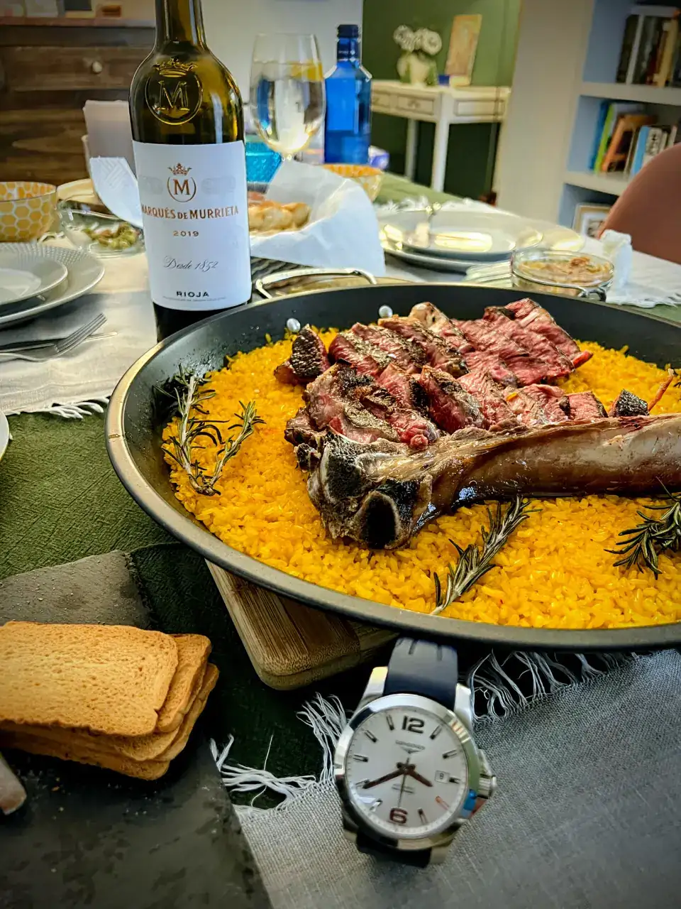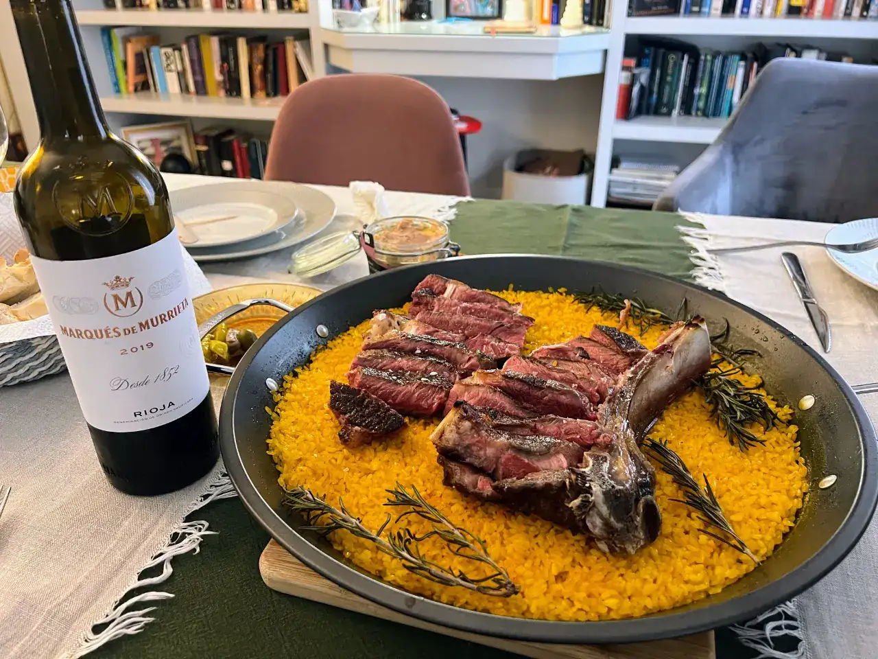 Arroz con chuletón de vaca, yo nunca los habría ligado, claro, por eso él es cocinero y yo no.