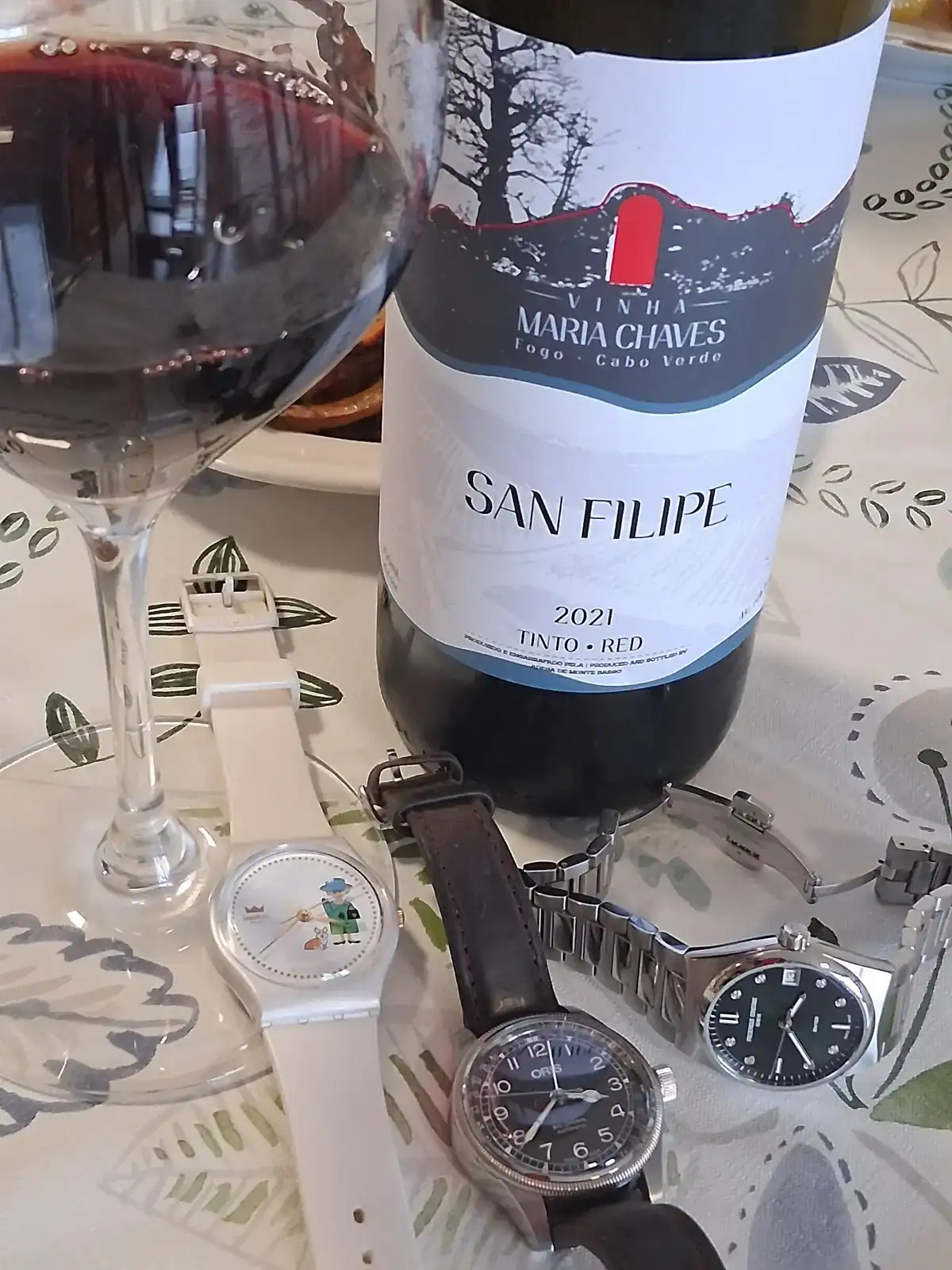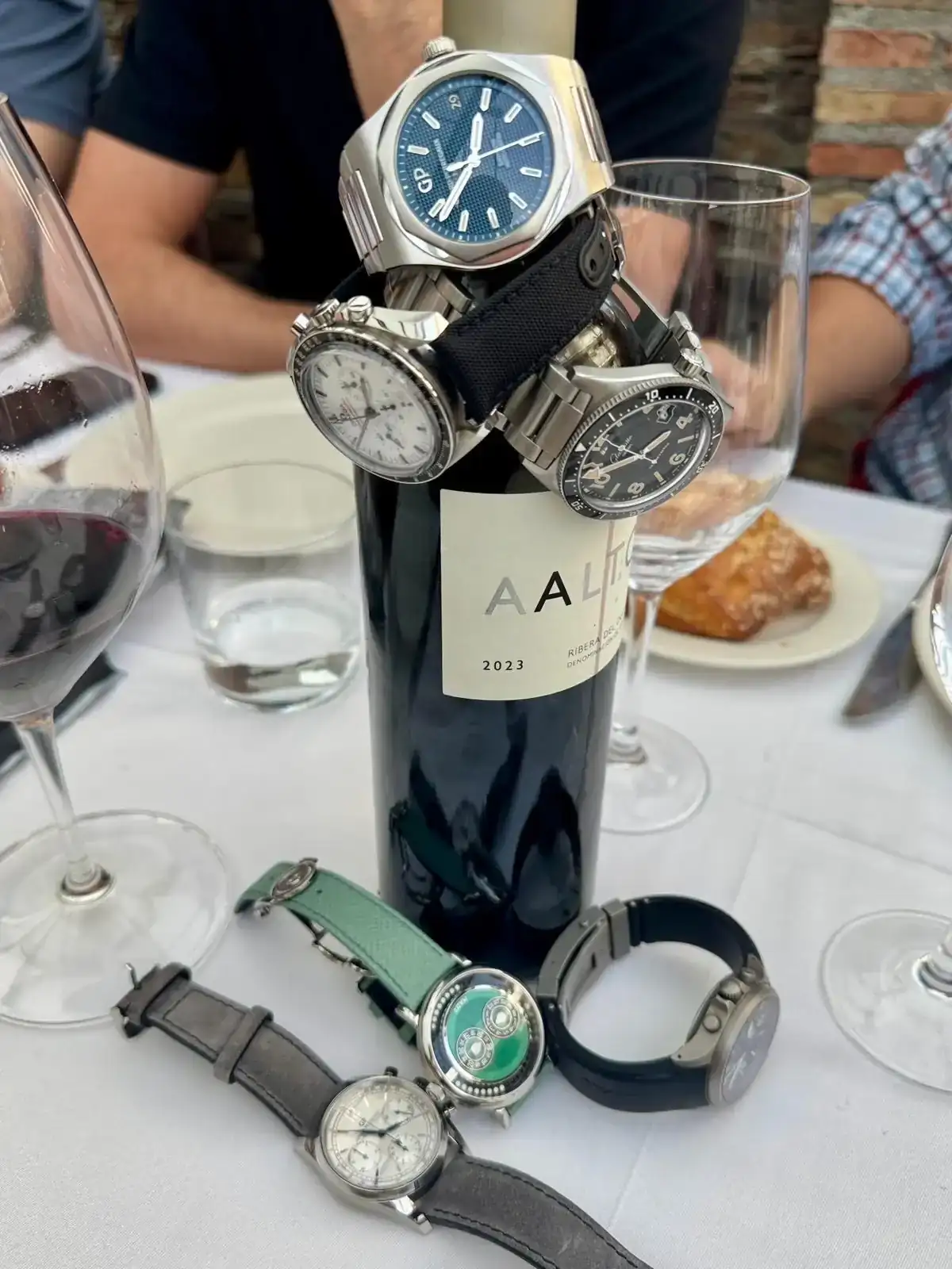 No sé si mirar para los relojes o para los vinos...Dos raros de fiesta. Empezamos con un Priorat polivarietal: Merlot, shyraz. buenísimo.