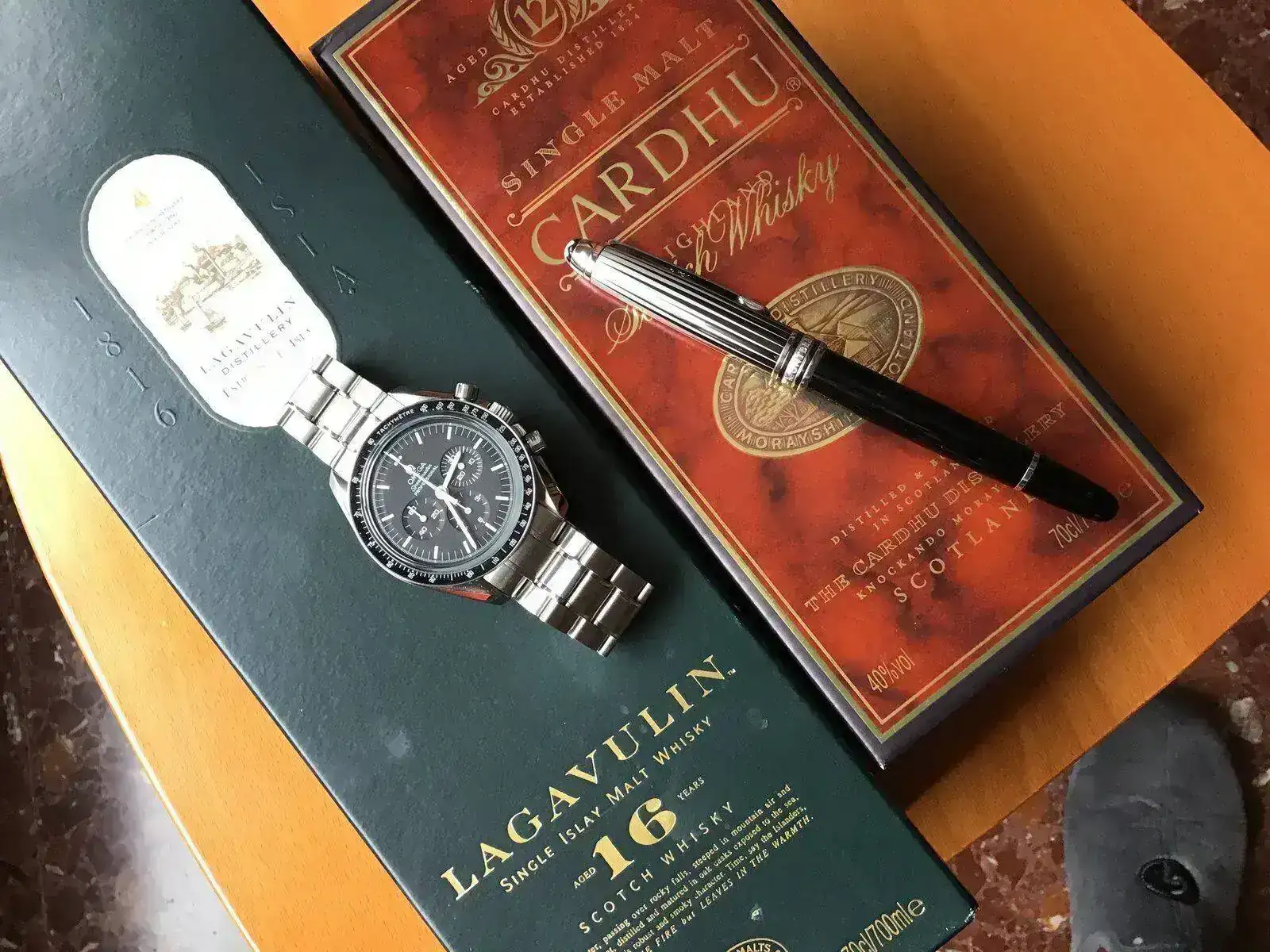 Anécdota a la vista del Lagavulin... No es de mis favoritos pero, estando en Roma, lo tenían en la barra del hotel así que me dije "oye, por una vez..." Así que se lo pedí al camarero, que no debía estar allí por su extraordinario currículo en hostelería. "Sin hielo, por favor". Abrió la botella, cogió un vaso ancho, y empezó a llenar, y a llenar, y a llenar... hasta que estuvo hasta arriba. Tuve Lagavulin toda la tarde y aún me subí el vaso a la habitación y tuve Lagavulin para desayunar![]()