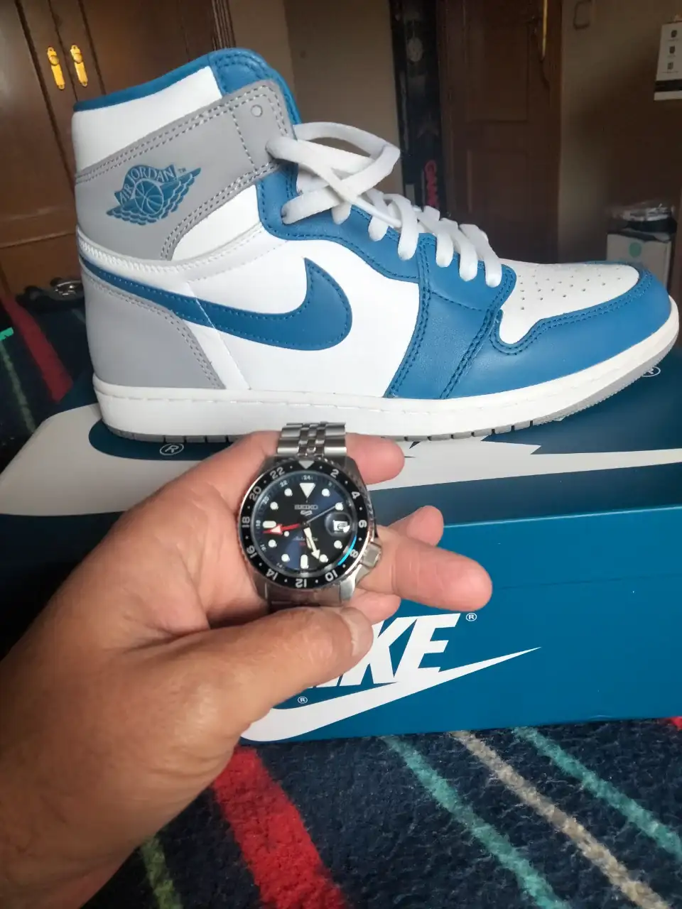 Seiko 5 GMT y Nike Air Jordan 1 Retro High OG True Blue. Ver el archivos adjunto 2951575Tienes muy buen gusto….