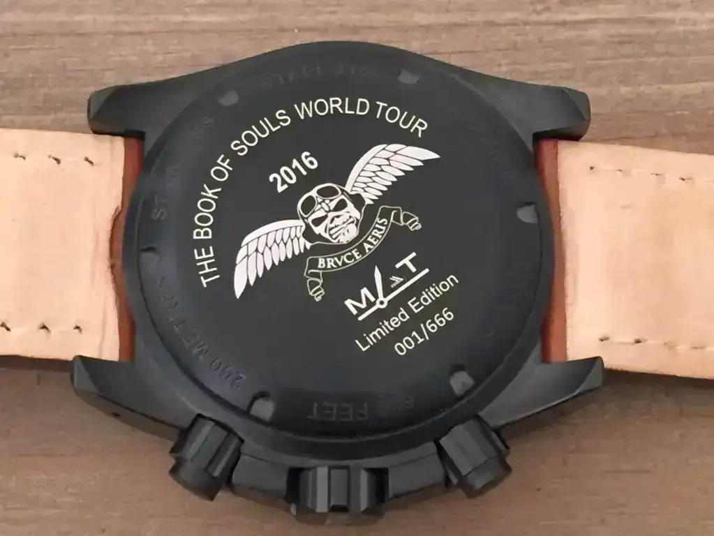 Por si algunos/as lo desconocen, Bruce Dickinson, el popular "frontman" de Iron Maiden, ejercició de embajador con los relojes MAT (Mer-air-Terre) en una edición limitada a 666 unidades. Se trató del"Bruce Aeris".