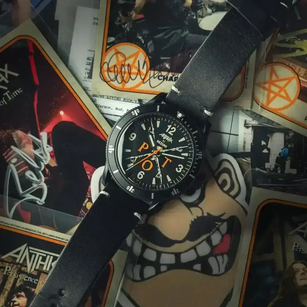 También el thrash metal y la relojería se unieron en la edición limitada de 50 unidades que los Suecos NEZUMI hicieron con Anthrax en su momento.