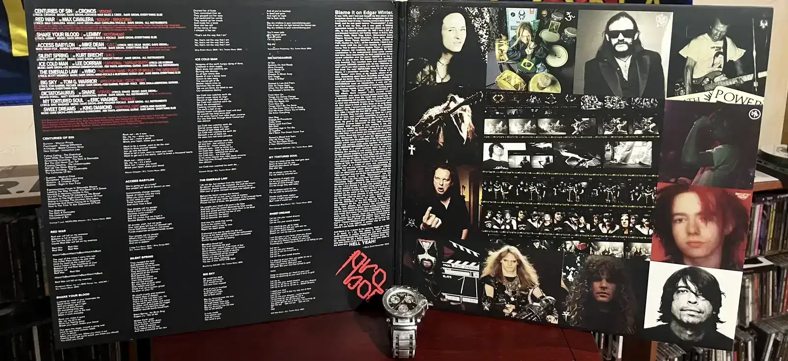 Esta Lemmy!! Que bueno...Dave Grohl , que fuera batería de Nirvana y luego se montó Foo Figthers , se permitió hacer un proyecto Metalico y en cada tema cantaba un cantante diferente del rollo , en una de las fotos más o menos se ve el tema y músicos participantes .