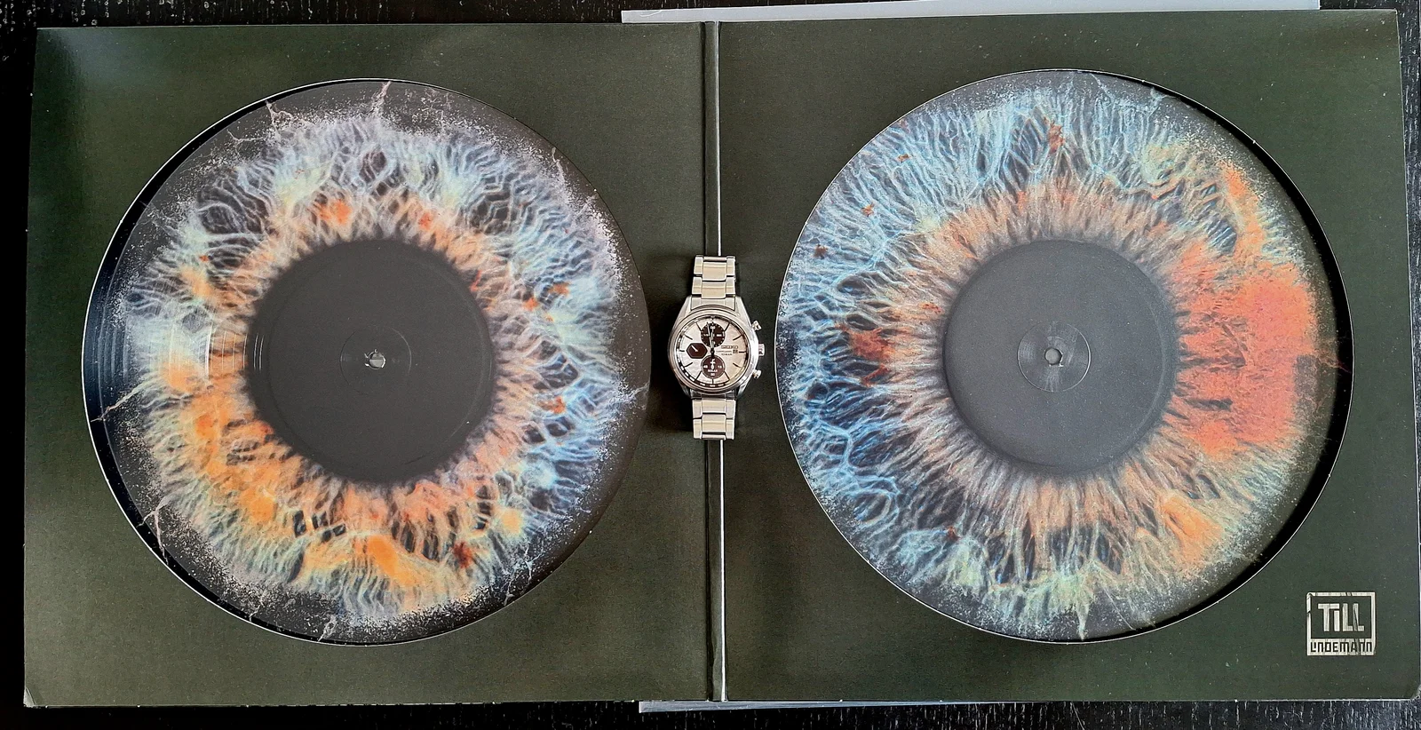Los vinilos tienen la imagen del iris de los ojos del cantante. Flipante!