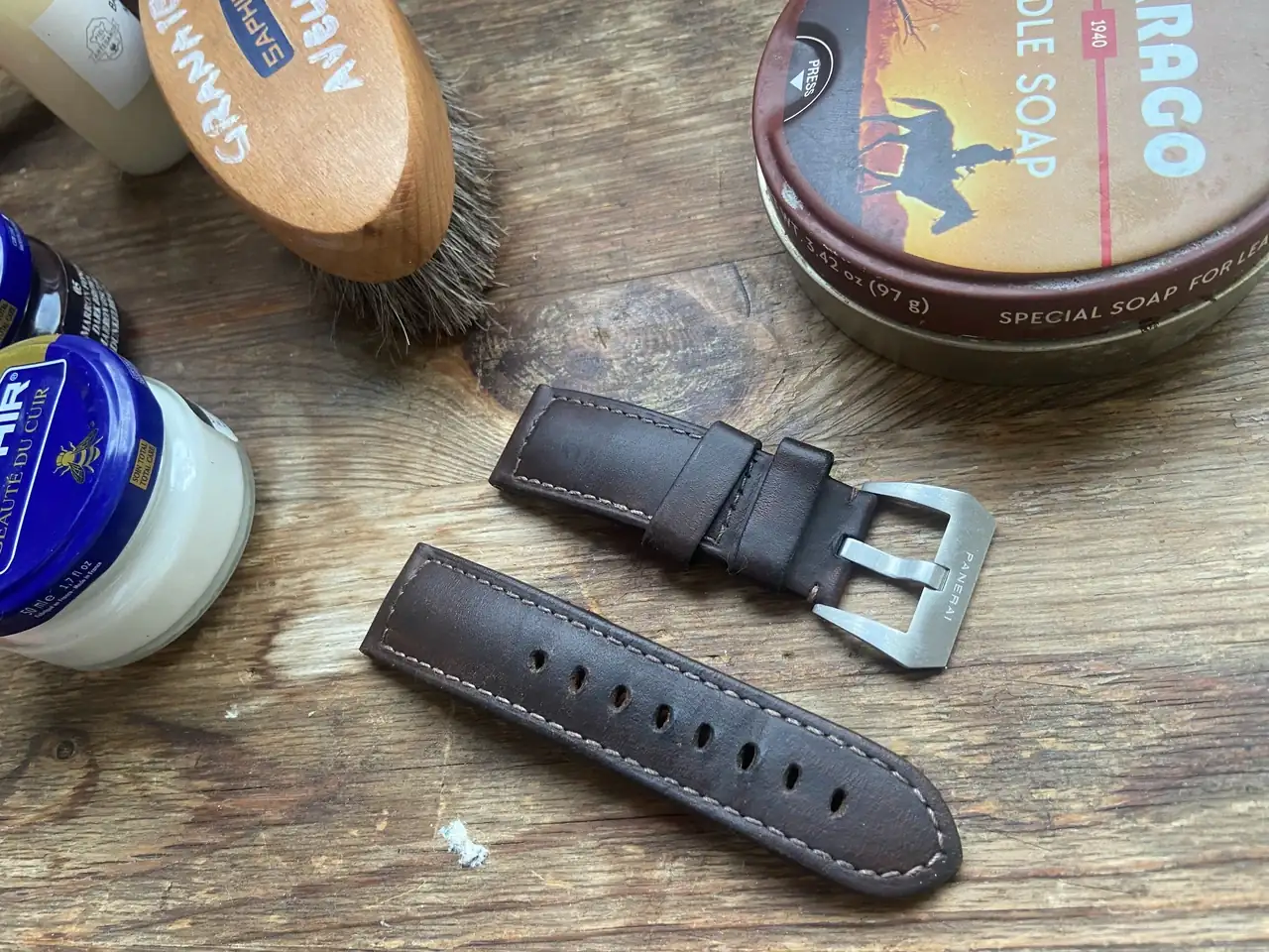 Supongo que todos habéis tenido la tentación de mejorar una de esas correas de reloj que habían perdido ya un poco de brillo y aplicarle algún tipo de producto para calzado