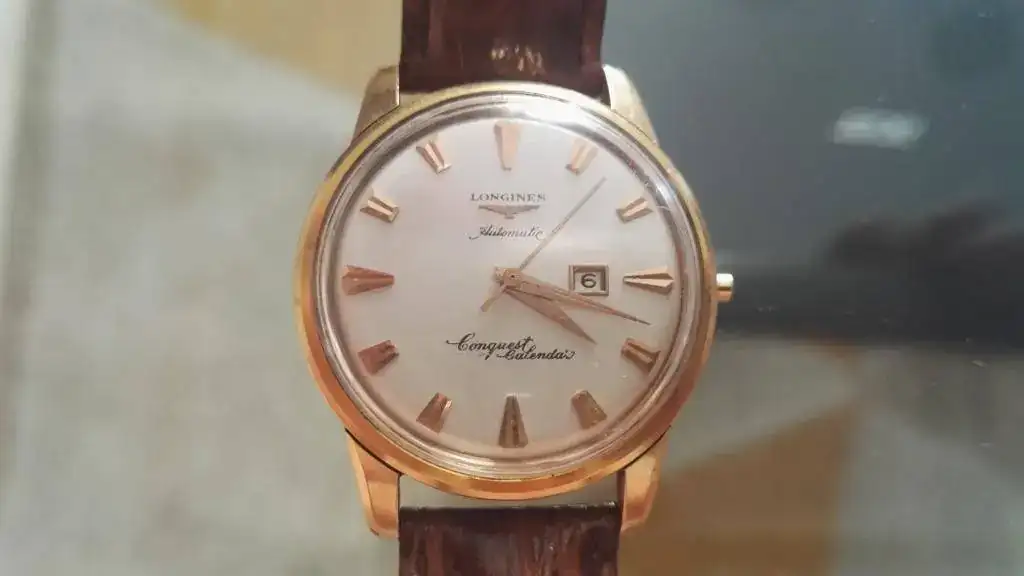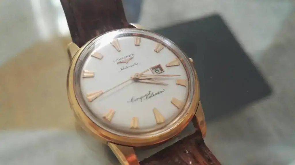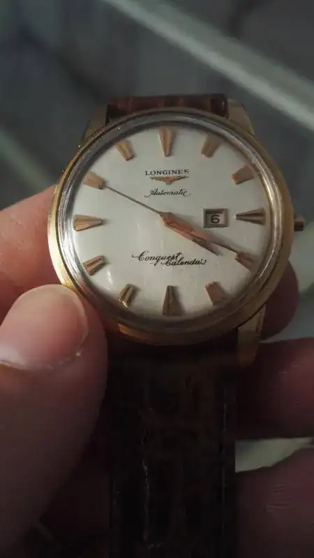 Heredé de mi padre hace unos meses un Longines Conquest Calendar creo que de los años 50 en buen estado de conservación y andando. Aunque funciona cuando lo meneas un poco, lleva muchos años en un cajón por lo que entiendo que le hace falta un mantenimiento y engrase.