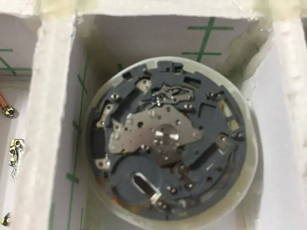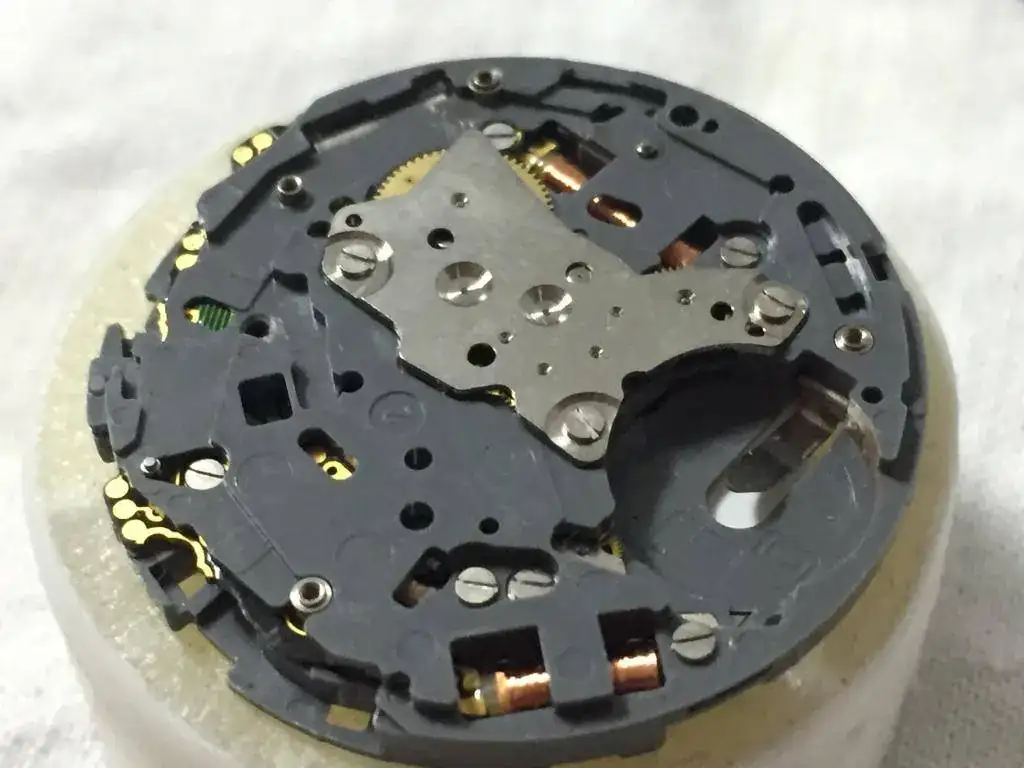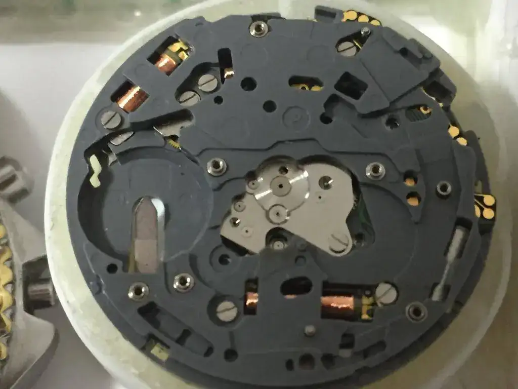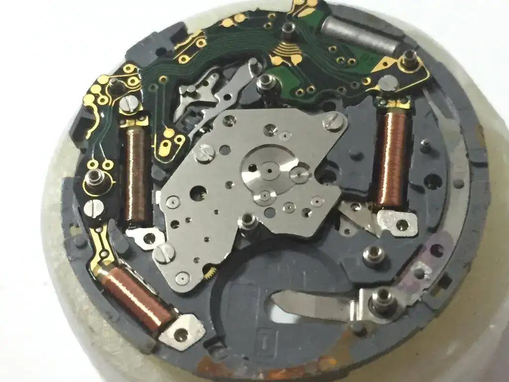 Y aquí es donde esta el problema, he revisado las tres bobinas y dos estan capút, las de la izquierda, que son las que estan cerca de la tija, en esa zona debajo de la pila y subiendo hacia la izquierda hay óxido, asi que deduzco que en algun momento se me mojo y esto habra dañado las bobinas ( recuerdo una humedad que tubo hace tiempo) , asi que me pongo a buscar la info de las piezas en la miyota, y aparece una por la bahía, pero a que precios, la gente pide 10 euros por una bobina, WHAT ??? 10 eurazos ,son dos bobinas las que no funcionan, 20 pavazos, asi que la mejor decision es buscar un mecanismo nuevo y vi uno completo por 19 euros nuevo , habra que esperar a que llegue y sustituirlo. Entonces llego a la conclusión que este por ahora me sirve para piezas miyota y para seguir aprendiendo, asi que sigo desmontando.