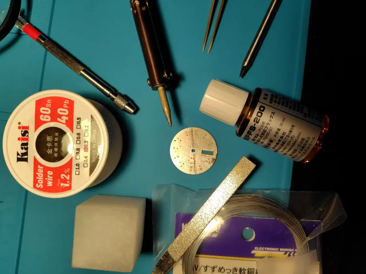 3. Con unas pinzas enrollas un poco de alambre de soldar de 0.3mm alrededor del cobre.