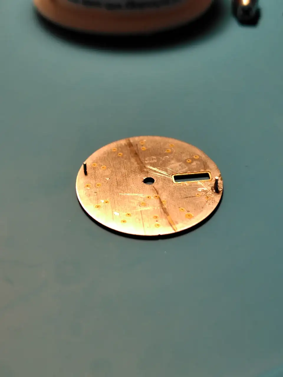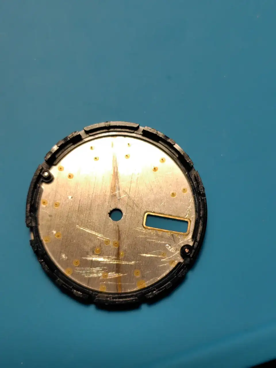 Se ve firme, parece que está bien. Lo único que la zona de alrededor quedó algo fea por la lima, pero no se ve. Deberé comprar una lima de precisión, mucho más fina y pequeña para la próxima. Ahora toca limpiar un poco el dial, ya que se ensució.