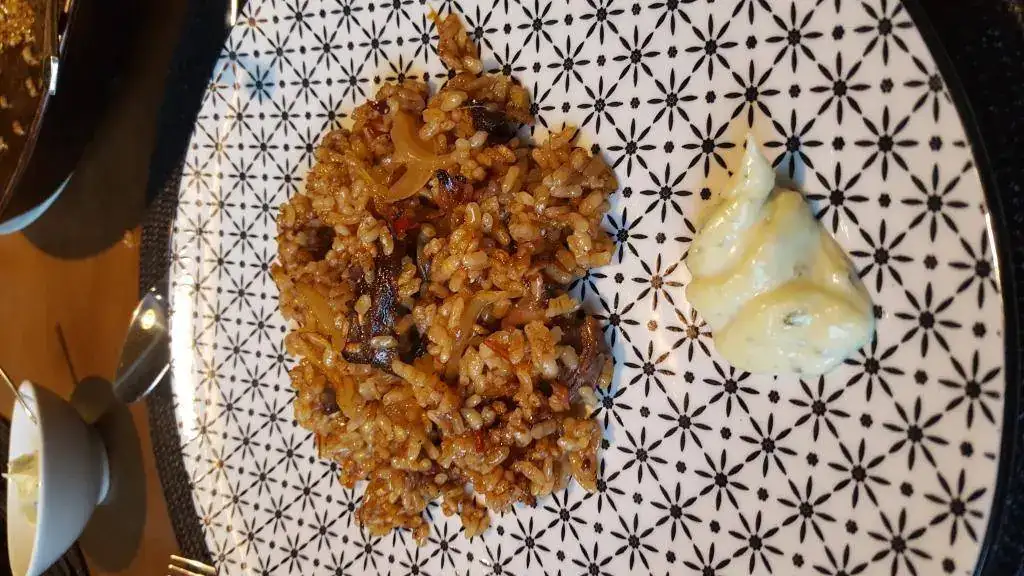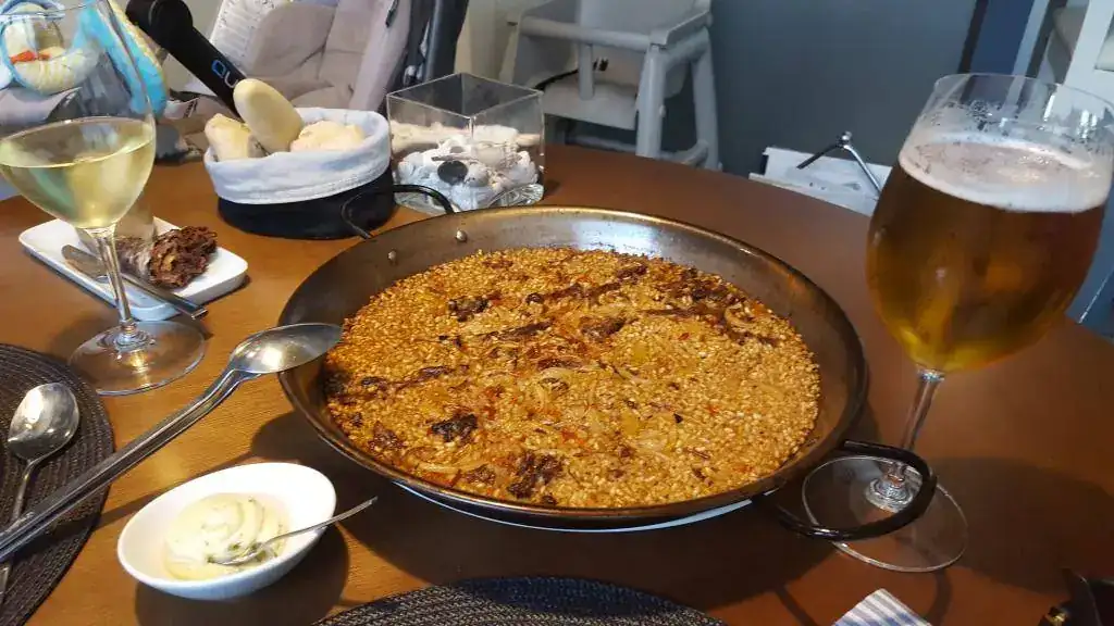 Ya llegado este punto hemos dado tiempo entre tanto al chef para que nos sacara a la mesa un arroz de rabo de toro, con su socarradito y todo, si señor...
