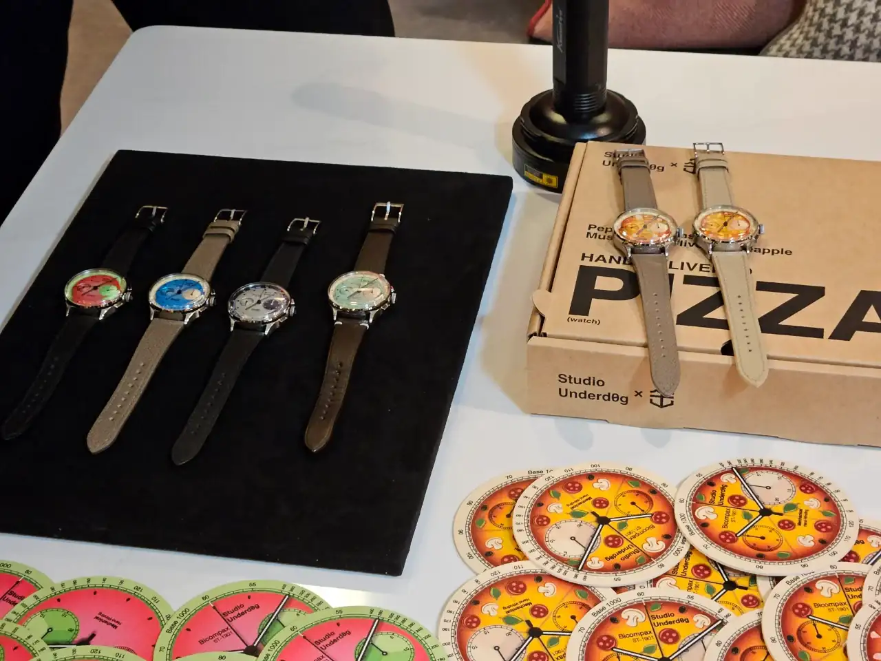 Tienen relojes verdaderamente bonitos y se nota que es una calidad superior a la estándar. Veis que en una de las fotos hay un trapo, es porque debajo estaba en exclusiva el nuevo modelo que van a sacar. Levantaban el trapo y te lo enseñaban pero no se podía sacar fotos. Fuimos los primeros fuera de Fears en ver ese reloj 😆. Ay, las tácticas de marketing de las empresas... además nos dieron un QR, que permite acceder a la pre compra del reloj. Voy a dar solo una pista, el nuevo modelo tiene un color muy de moda, y una complicación guapísima, muy minimal.