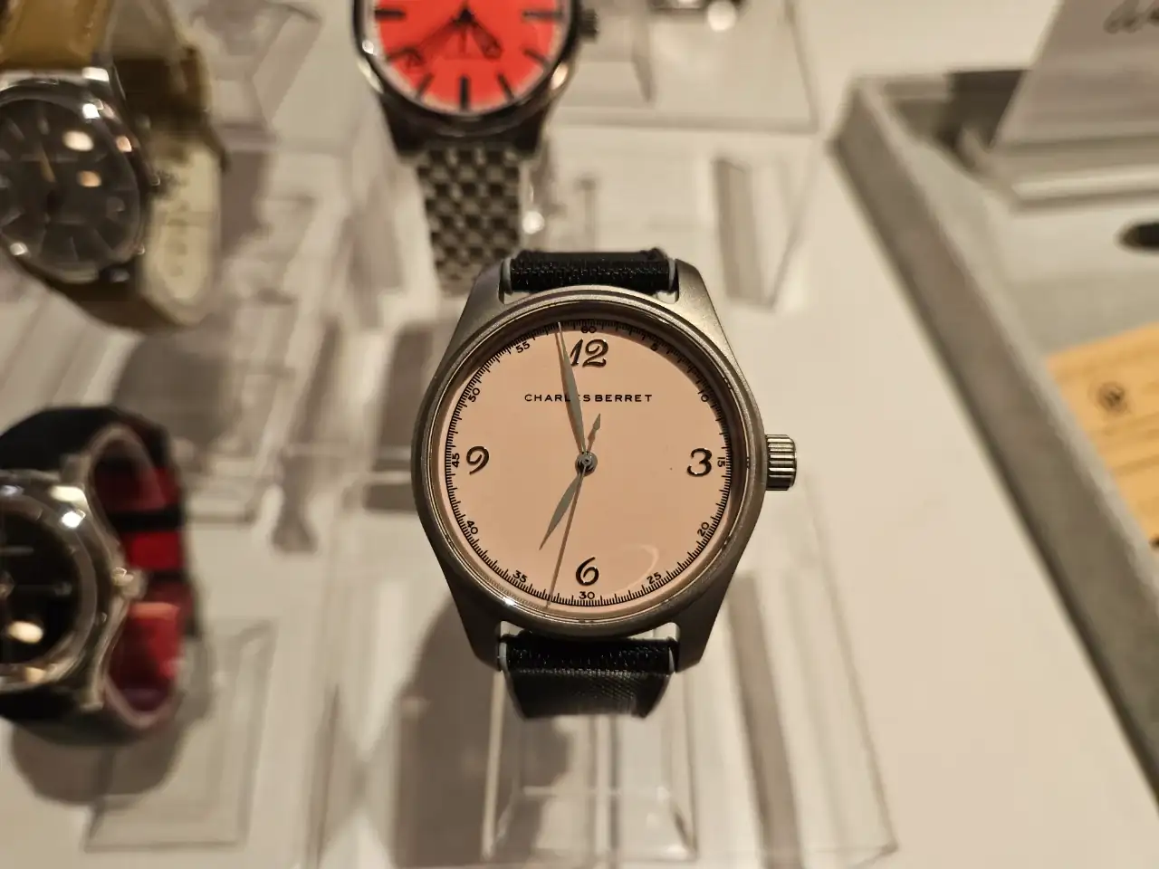Esta micro marca tiene relojes de titanio, algunos diseños interesantes, esferas full lumen, y aunque son bonitos, tampoco es que a mi personalmente me vuelvan loco. A mí lo que me pasa con las micro marcas es que tengo marquitis. Si compro una micro marca ha de ser porque tenga algo verdaderamente único o distinto que para mi le de valor, si no, prefiero una marca con historia. Las que simplemente son buenos relojes calidad-precio, no termino de ver cómo pueden competir con un buen reloj suizo. En mano estos Charles Berret me parecieron correctos pero nada del otro mundo. Acordes a su precio, pero no una locura. También he decir que el titanio en mano hace parecer barato a un reloj, cosa que sin embargo con mi Certina de titanio, no me pasa, no sé explicar el motivo.