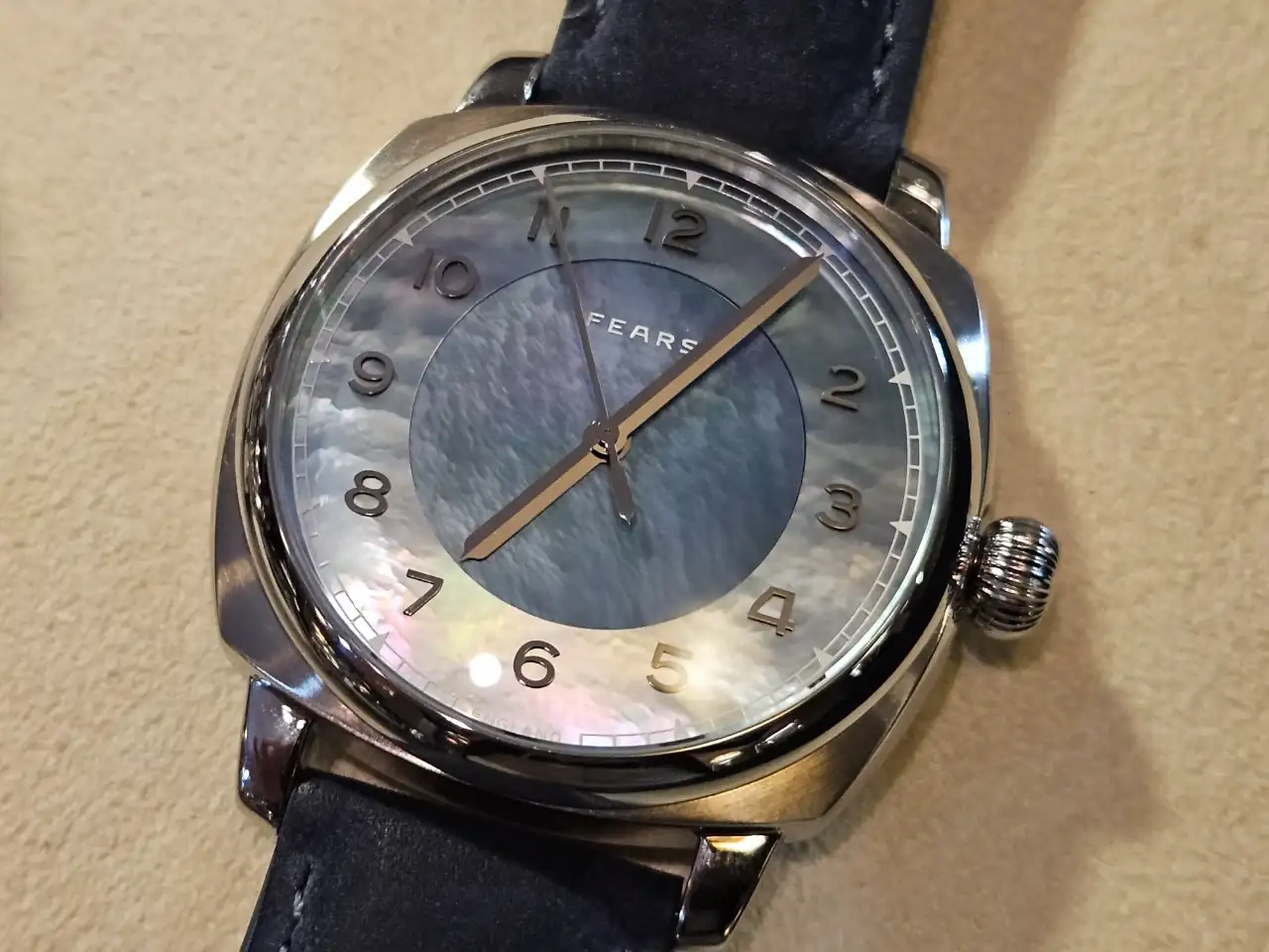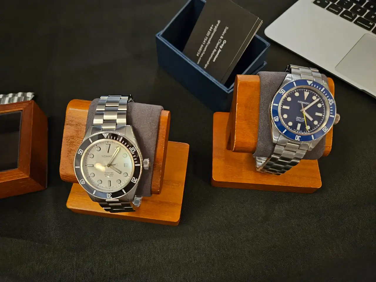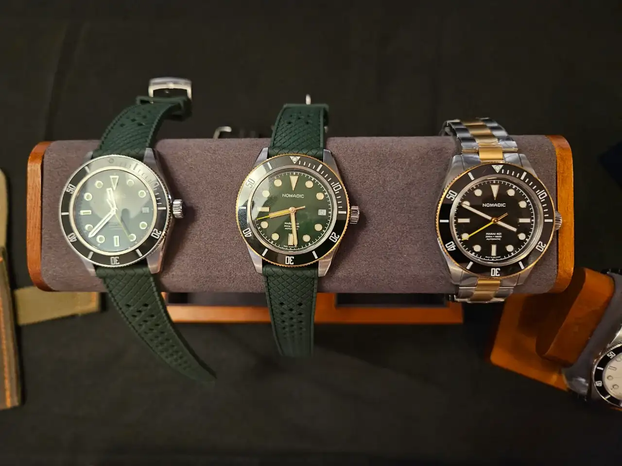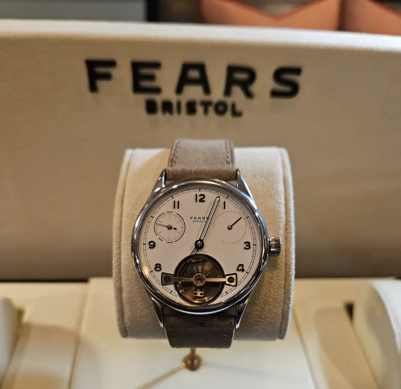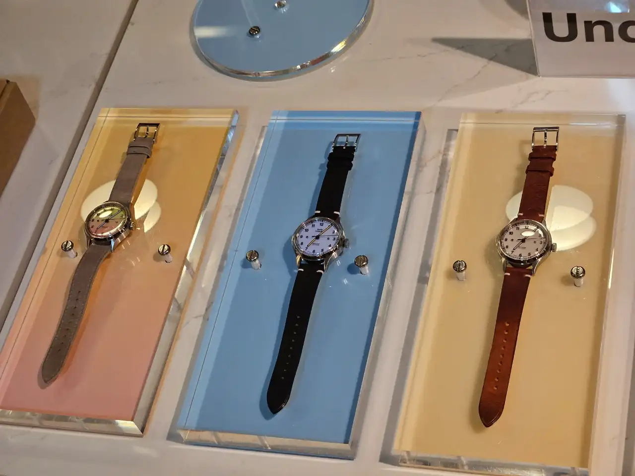Tienen relojes verdaderamente bonitos y se nota que es una calidad superior a la estándar. Veis que en una de las fotos hay un trapo, es porque debajo estaba en exclusiva el nuevo modelo que van a sacar. Levantaban el trapo y te lo enseñaban pero no se podía sacar fotos. Fuimos los primeros fuera de Fears en ver ese reloj 😆. Ay, las tácticas de marketing de las empresas... además nos dieron un QR, que permite acceder a la pre compra del reloj. Voy a dar solo una pista, el nuevo modelo tiene un color muy de moda, y una complicación guapísima, muy minimal.