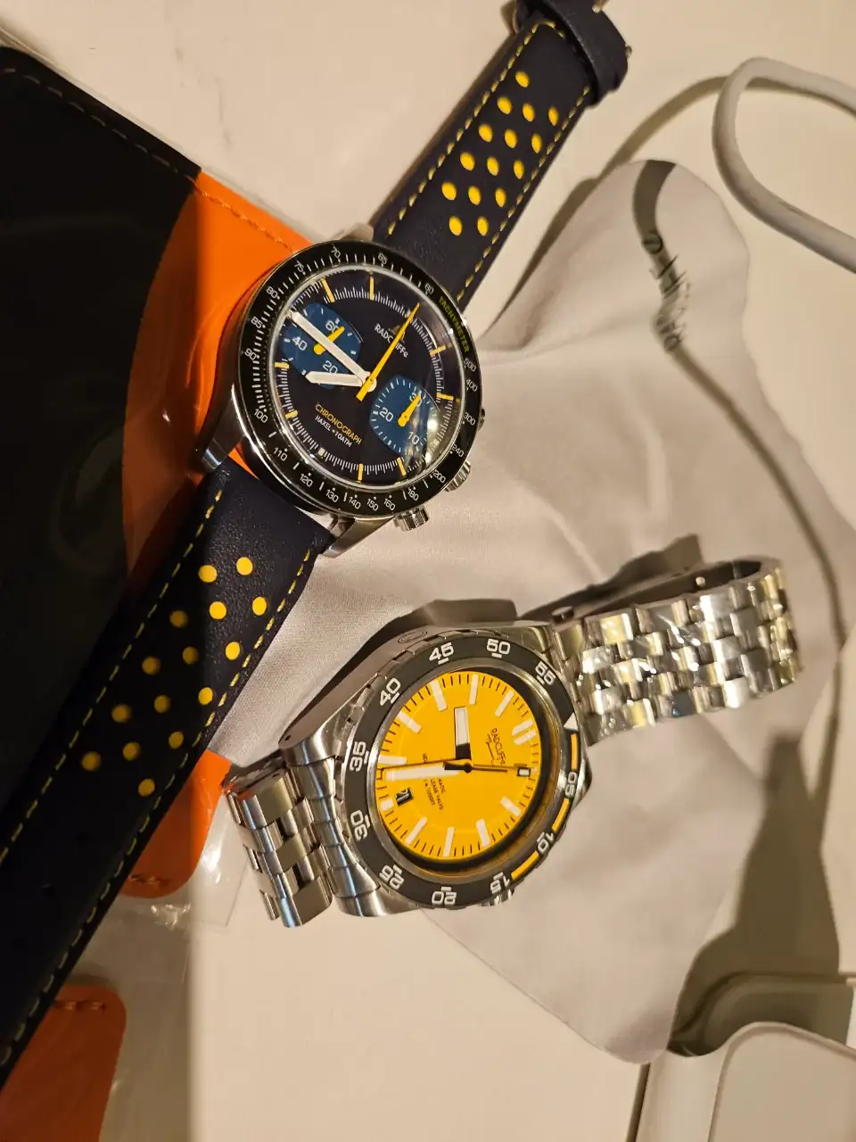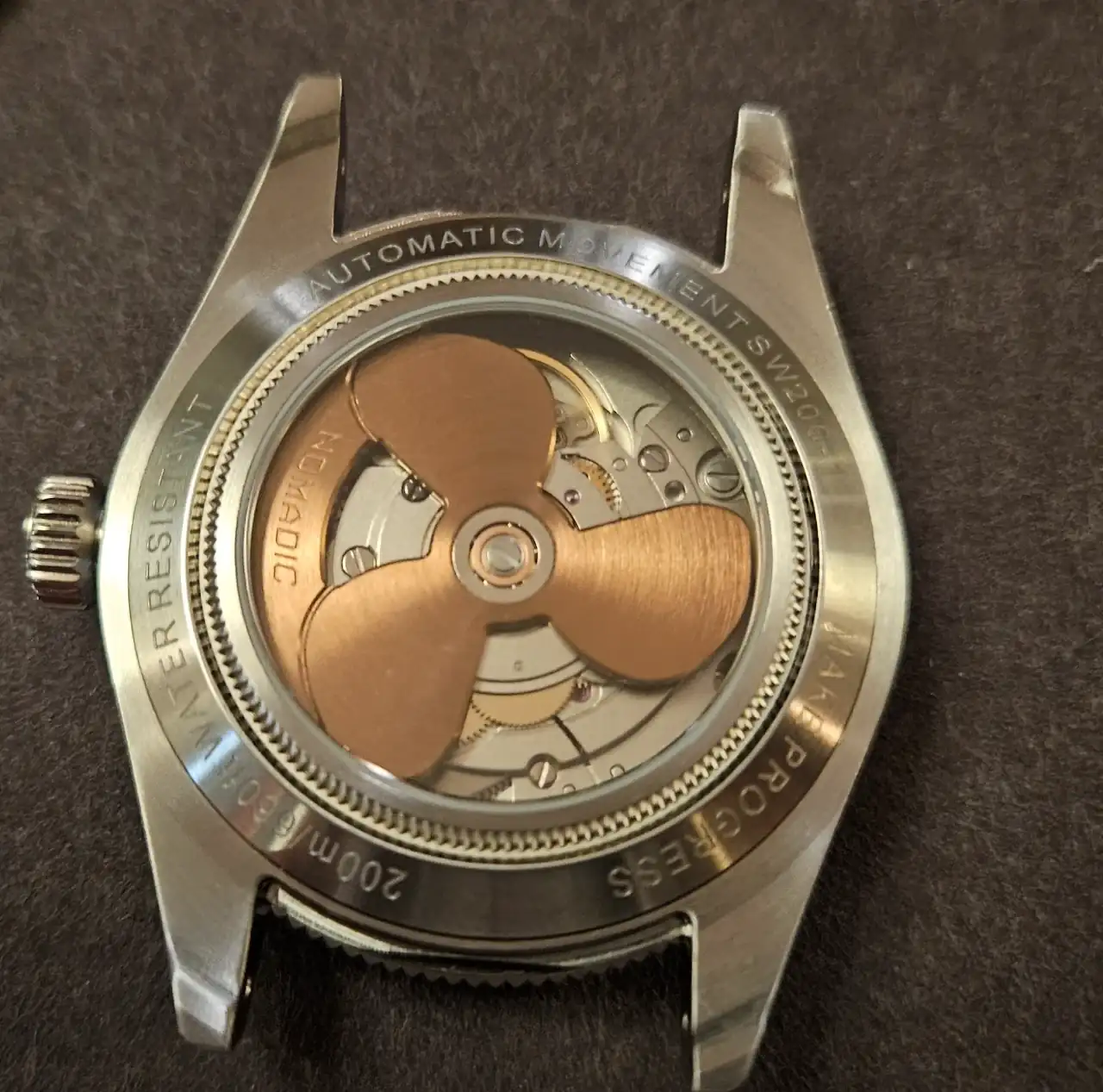 Bueno con esta marca me pasó al revés que con otras, que en persona no me han flipado más que por foto. Es la primera vez que los veo. También es cierto que la trasera de los cronos ST19 ya la tenía vista, ya que tuve el mítico Red Star de aliexpress. Lo que sí mola mucho es la esfera de los modelos nuevos, los que no son crono, sobre todo cuando se les pega con la linterna UV y reluce toda la esfera.