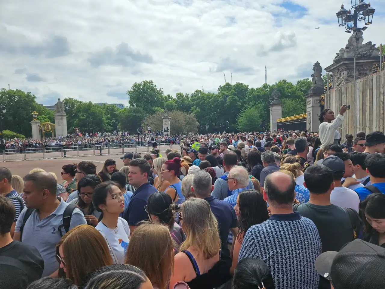 Decir que además casi llego tarde al aeropuerto porque quedé atrapado en un gentío en Buckingham... un agobio...