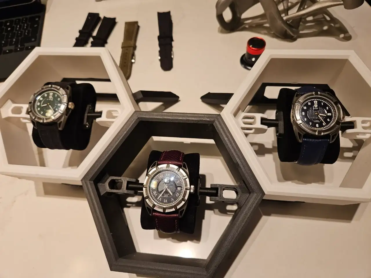 Están hechos con impresión 3D de metal, titanio si no entendí mal (en este punto me gustaría recordar que allí todo era en inglés, y yo no soy bilingüe 😆). Su web tiene un configurador para que te crees tu propio reloj y una vez hecho el pedido , te lo producen.