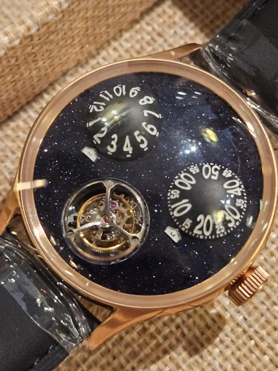 El 8 de agosto salen a la venta el Le Dome y el Le Dome Tourbillon ya como modelos de producción, y es posible que haya versión chapada en oro, este era un prototipo que estaba con los plásticos...