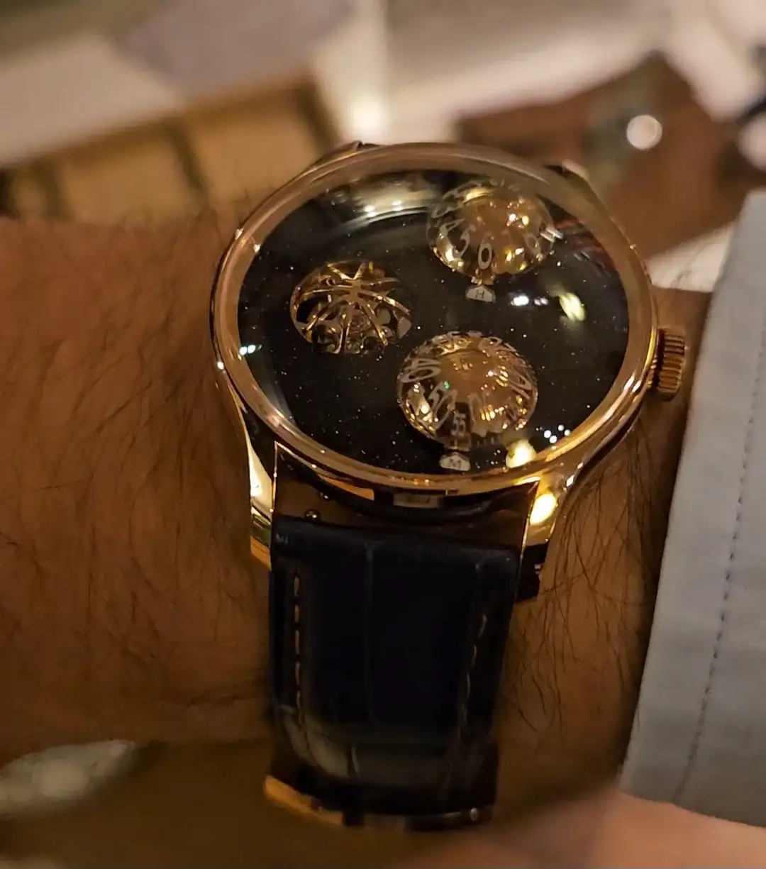 El 8 de agosto salen a la venta el Le Dome y el Le Dome Tourbillon ya como modelos de producción, y es posible que haya versión chapada en oro, este era un prototipo que estaba con los plásticos...