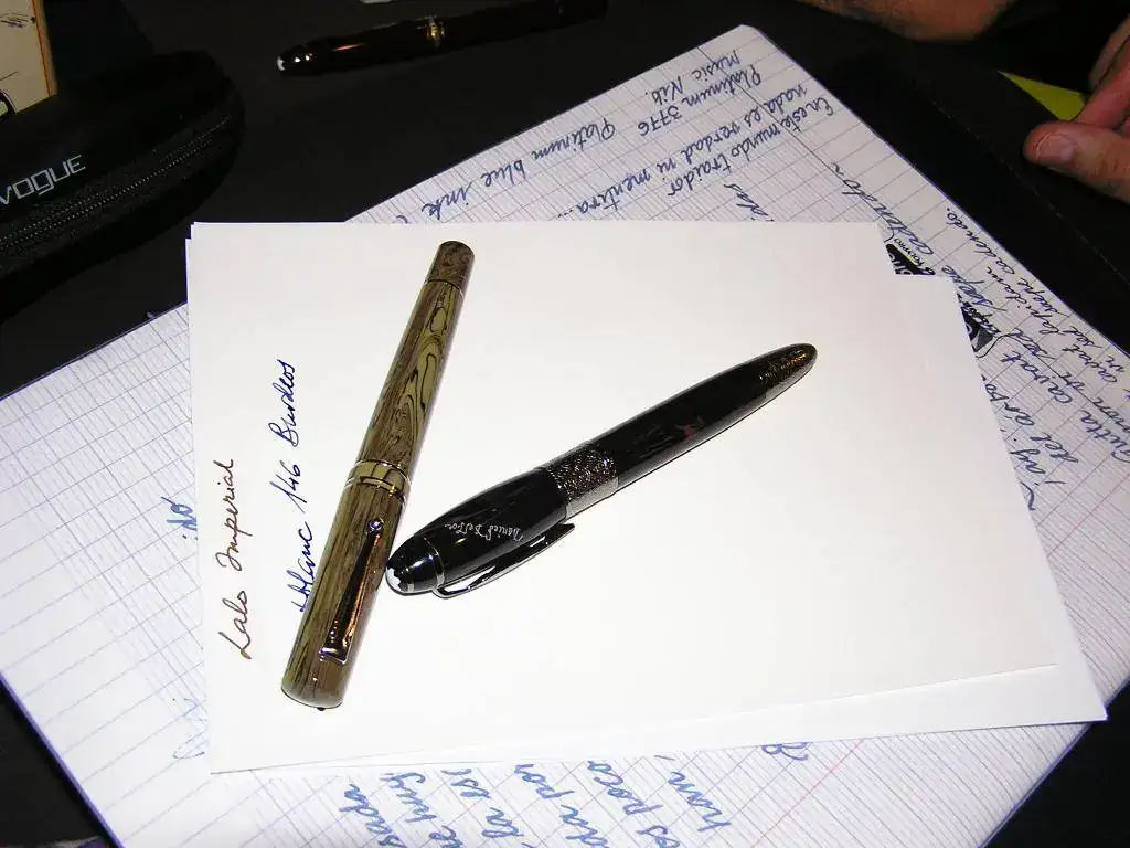 Para hacer boca, Manolo nos mostró su última adquisición (Mont Blanc 146 burdeos) y la niña de sus ojos (rasgados) Nakaya:
