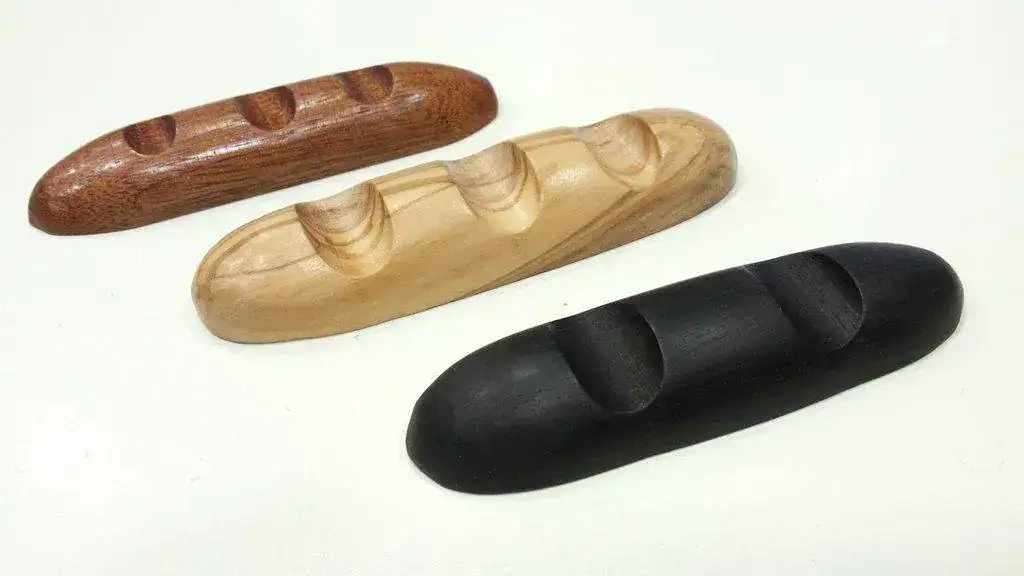 Aprovechando unos trozos de leña de madera de olivo que había en casa me he entretenido en hacer unos reposa plumas.