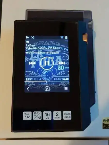 Reproduce todo tipo de archivos, FLAC, mp2, DSD, etc... en alta definición, con 2 ranuras microSD para poder llevar toda la música siempre contigo, y lleva 2 salidas para auriculares ( normal de 3,5mm., y balanceada de 2,5mm. )