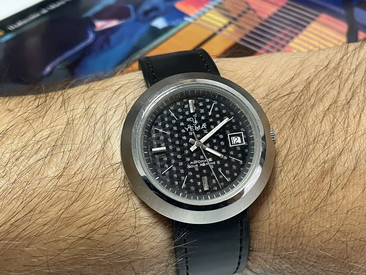 Otra de las razones que me animó a tratar de adquirirlo fue poder ver su movimiento, que rápidamente identifiqué como un France Ebauches 140 (FE 140), ya que teniendo en cuenta que el FE 140 fue lanzado al mercado en 1975, eso, a mi entender, indica la época, a grosso modo, de fabricación del reloj, que un servidor supone que data de mediados-finales de los años 70, o incluso principios de los años 80, del pasado siglo; es decir, creo que el reloj pertenece a una etapa de Yema anterior al periodo en el que Seiko se convirtió en propietario mayoritario de la marca (cosa que, según archivos, sucedió en diciembre de 1986). Y por eso me he referido a él como un francés de pura cepa, al ser un reloj de una casa relojera francesa que, en este caso, sí monta un movimiento también de manufactura francesa.