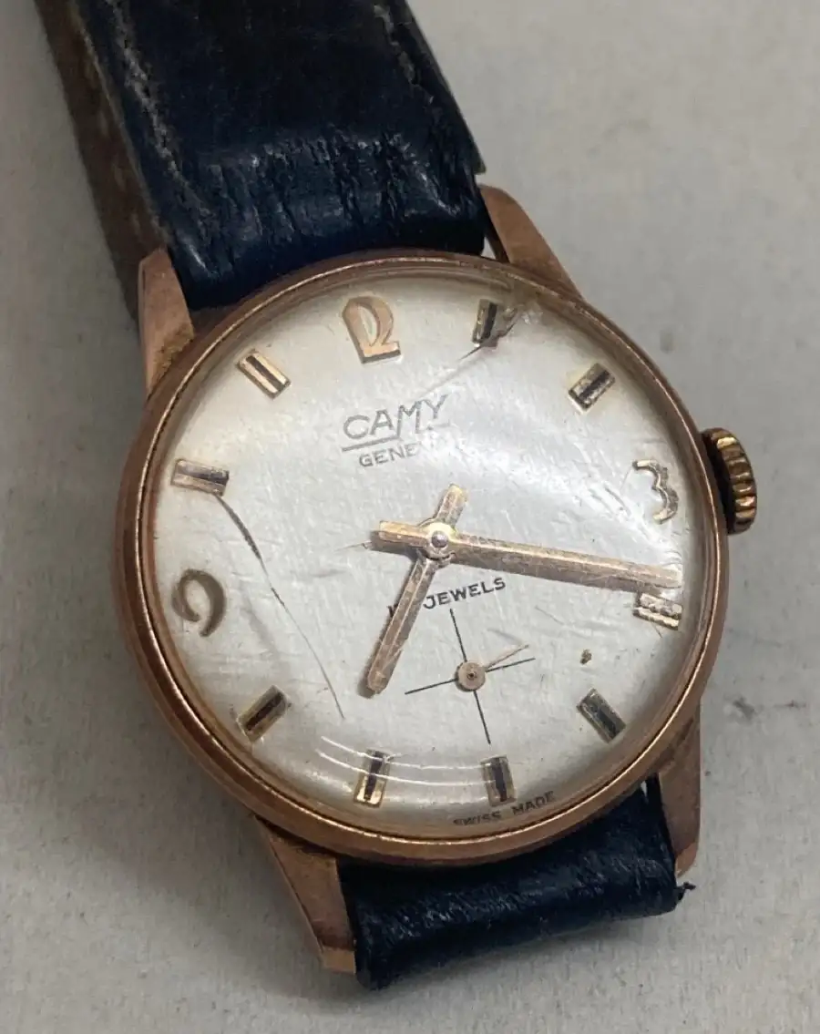 Entonces, el punto de partida fueron unas fotos que él compartió del reloj Camy que su abuela materna le regaló y que, según sus propias palabras, "estaba destrozado porque se le cayó al mar desde una barca". Estas son las primeras fotos que él mostró del reloj: