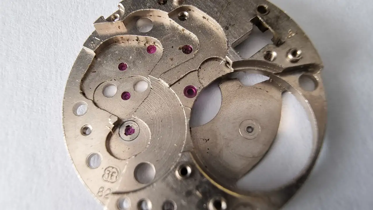 Una vez desnuda, la platina presentaba los típicos restos de aceites secos en varias zonas, aparte de eso, tenía un buen aspecto en general y todas las joyas estaban en perfecto estado aunque algo sucias:
