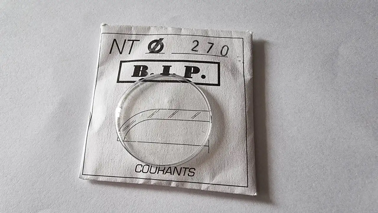 Durante la fase de la restauración de la caja, bisel y corona recibí el nuevo plexi de 27mm de diámetro y frente acupulado: