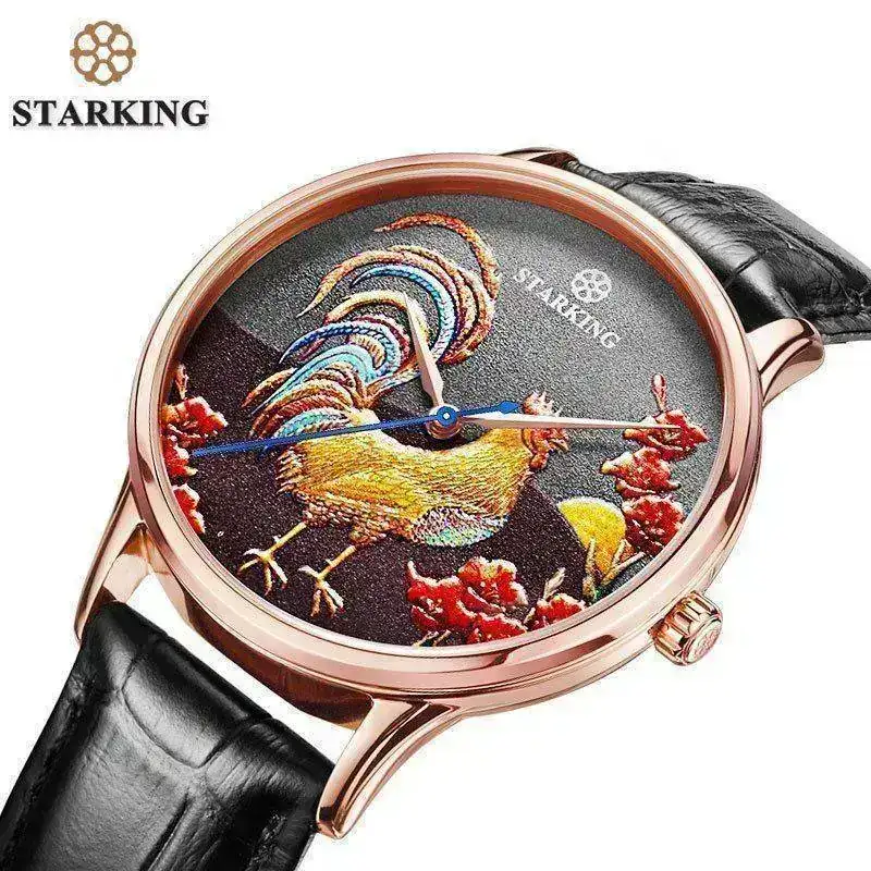 El de los gallos está chulo, si es una copia del Chopard, el movimiento es automático según gearbestÉste es el típico reloj que se ama o se odia. Es un Starking AM0242 homenaje, hasta donde he podido averiguar, a los Chopard Urushi... Desde luego hay que reconocer que no deja indiferente... Me ha surgido la duda de si es automático (lo que dice en la mayor parte de lugares) o de cuarzo (lo indica en alguna tabla) aunque no he profundizado en este aspecto. Un reloj adecuado para el que quiera tener en su caja una pieza económica y original al ser un homenaje a un reloj no demasiado conocido.