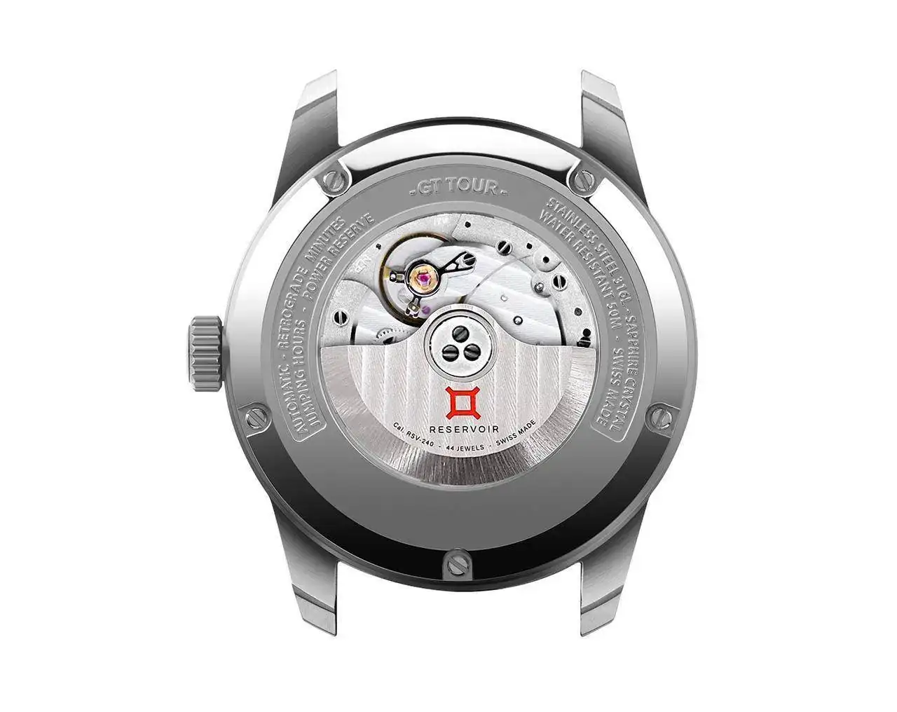 El nuevo GT Tour Racing rinde homenaje a los códigos y al mundo del automovilismo deportivo contemporáneo. Inspirada en los materiales utilizados en los coches de carreras más potentes y duraderos del mundo, la esfera está hecha completamente de fibra de carbono tejida, un diseño que le da al reloj un decidido aspecto deportivo.
