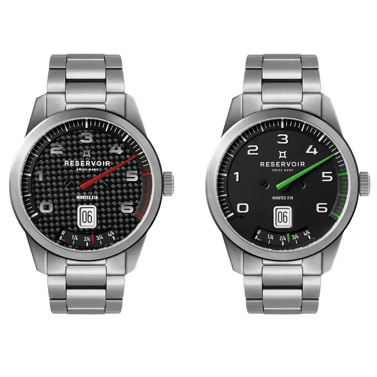 Inspirados en instrumentos de medición mecánicos, la originalidad de Reservoir radica en redefinir la estética de los relojes monoaguja: minuto retrógrado, hora saltante y reserva de marcha. Cada 60 minutos, la única aguja retrocede y y reinicia su camino. Su lema, "Falla o triunfa, pero hazlo en a lo grande". Los relojes de Reservoir reflejan la funcionalidad y el atractivo estético de los contadores o indicadores principalmente de los automóviles, la aeronáutica y la marina. Sus calibres han sido desarrollados por TELOS, un especialista en crear o adaptar movimientos a medida. El último, el RSV-240 monta un módulo de 124 piezas conteniendo las tres "complicaciones" sobre un calibre de manufactuta La Joux-Perret.