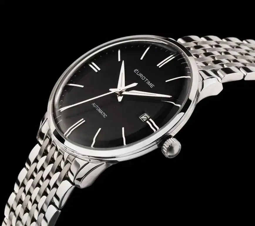 En Argentina en general, o al menos en las ciudades que he visitado, las relojerías tienen gran variedad de relojes "Junghans By Eurotime". Sin ir más lejos, yo tengo uno hace ya algo más de 5 años y ha tolerado fantásticamente bien todo tipo de maltratos. Fue mi primer reloj, con el cual despertó mi vicio dormido desde hacía muchos años... a veces me pregunto si debí comprarlo jajaja porque por su culpa ya no dejé de mirar relojes, pero bueno, fue un día que sentí que no podía estar sin nada en la muñeca. Mejor no me pierdo del tema... cuestión que compré un Junghans "By Eurotime" a un precio bastante barato, en su momento AR$ 450... para tener una referencia, un Casio equivalente costaba AR$ 500 en ese momento y un Seiko rondaba los $900. Tanto el cuerpo como la malla son de acero "mate" (adjunto una foto mejor) y se siente absolutamente sólido al tacto además de considerablemente pesado.