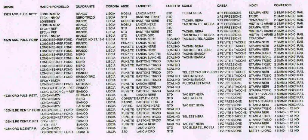 Añado una lista en Italiano que sirve de guia para identificar los distintos modelos. (No pongo la fuente porque no lo apunte y no la recuerdo)