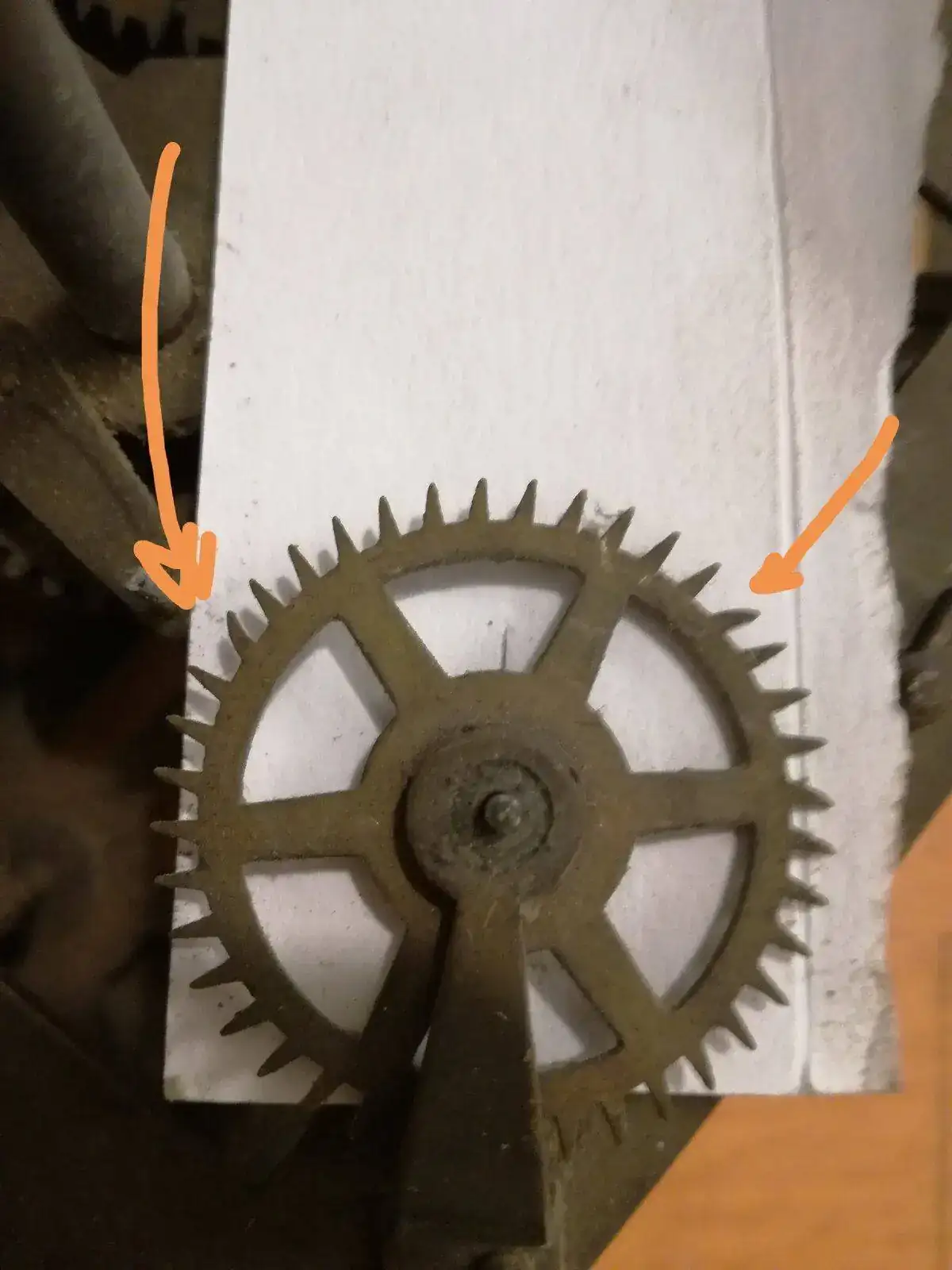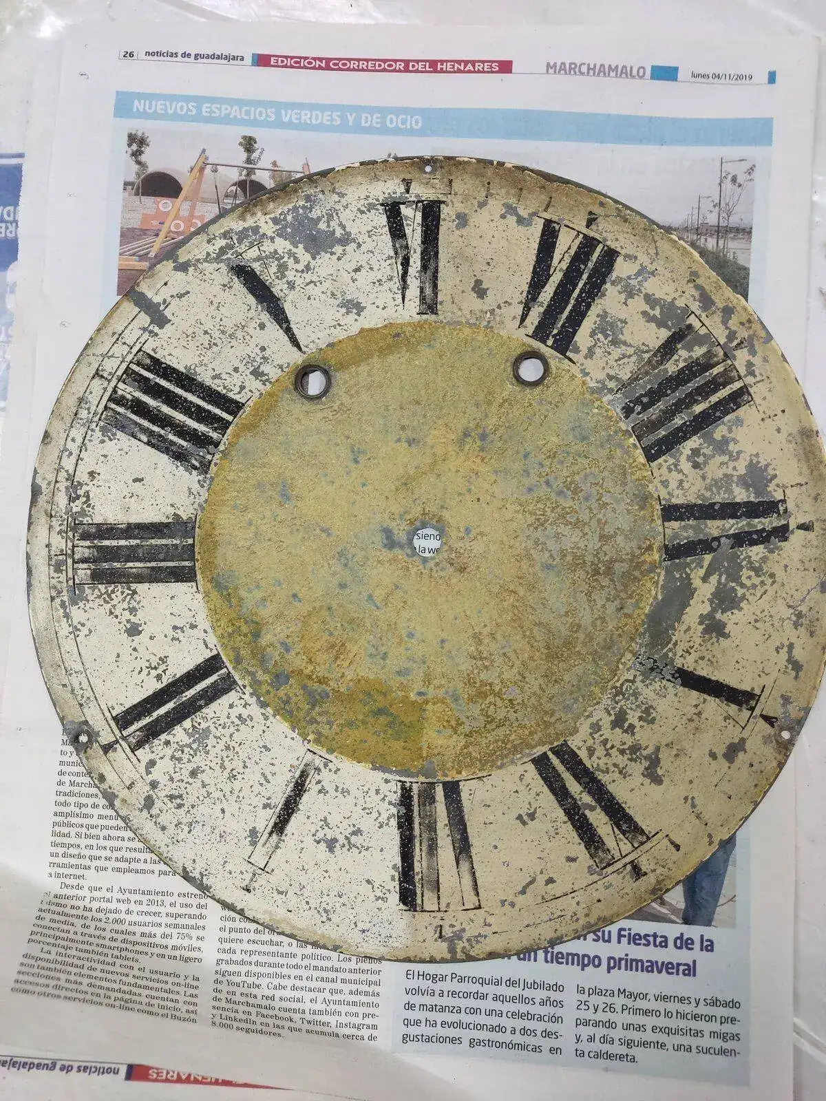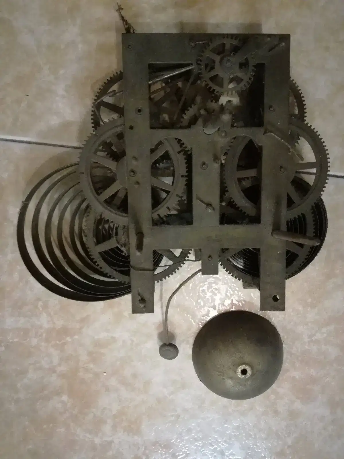 La sonería con campana estaba completa, pero le faltaba todo el escape, varilla, péndulo y la rueda de escape presentaba no pocos dientes torcidos.
