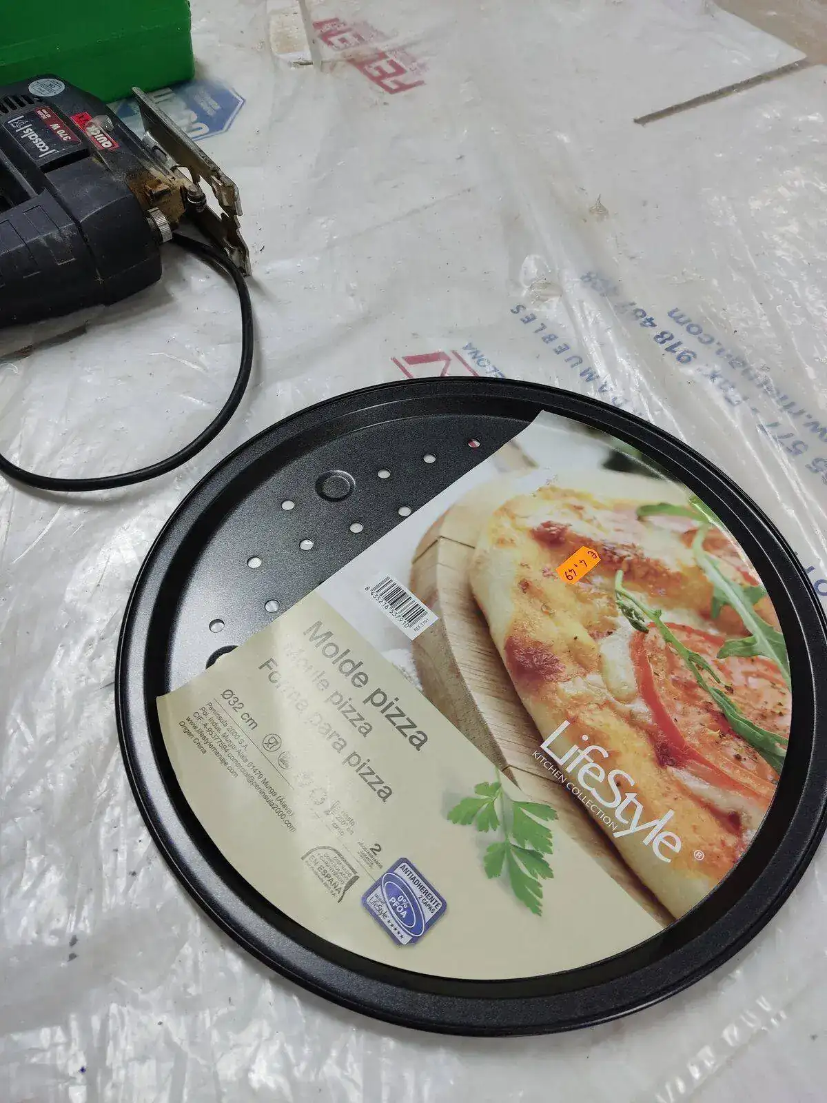 Lo reconstruí a partir de una bandeja metálica para pizzas: