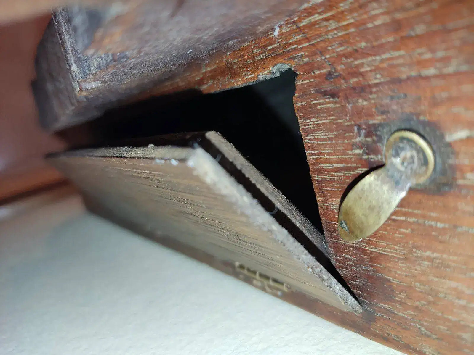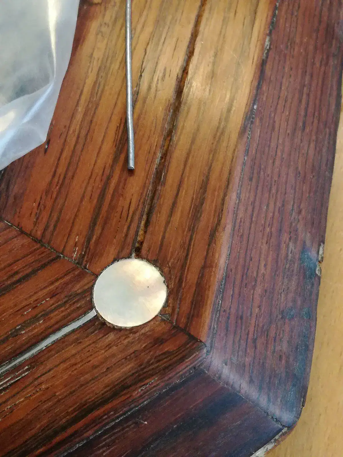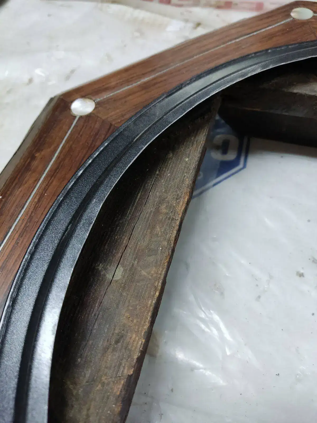 Puerta lateral que hubo que reconstruir a partir de dos piezas de madera (después de documentarme con otros relojes de época) , chapeados, hilos de metal que faltaban y algunos que otros arreglos completaron la tarea.