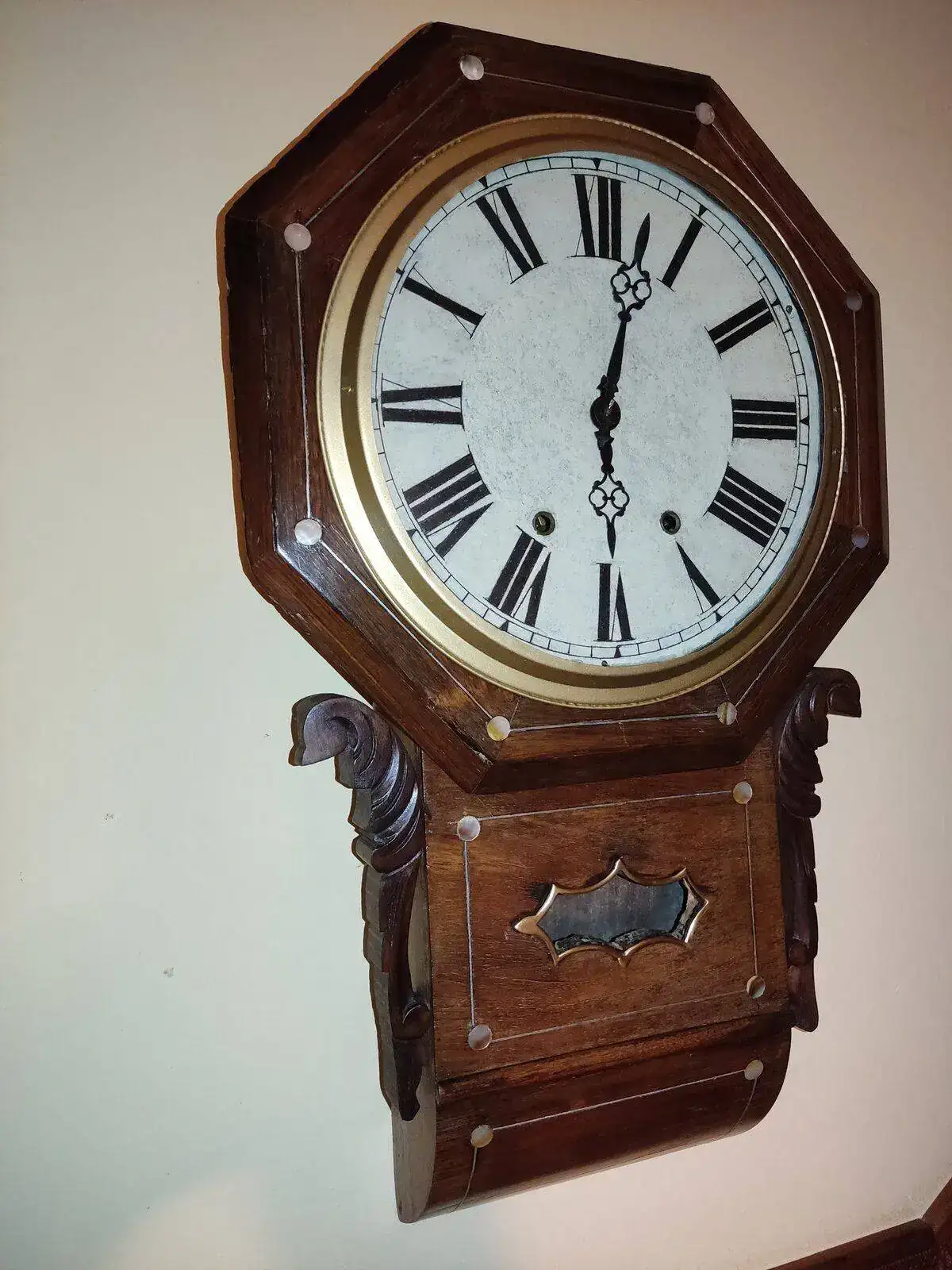 La antigüedad del reloj es difícil de precisar ya que carece de marcas en la esfera y maquinaria. De acuerdo a la tipología del reloj y maquinaria, estimo que estaría en el último cuarto del XIX (1870-1890) aproximadamente. La maquinaria es americana (estadounidense).